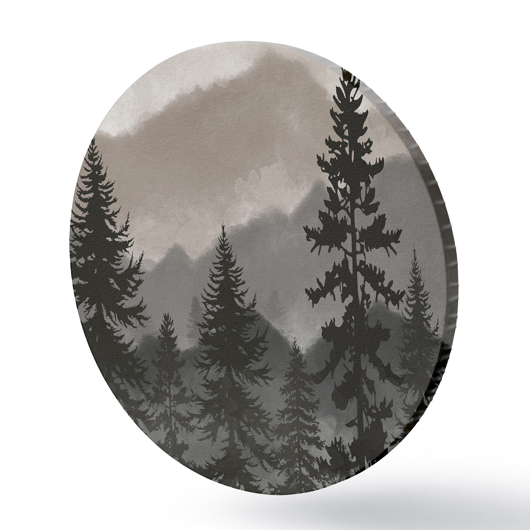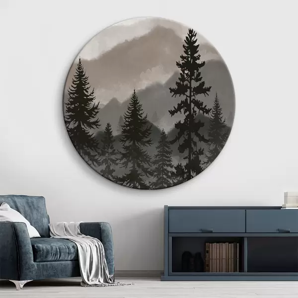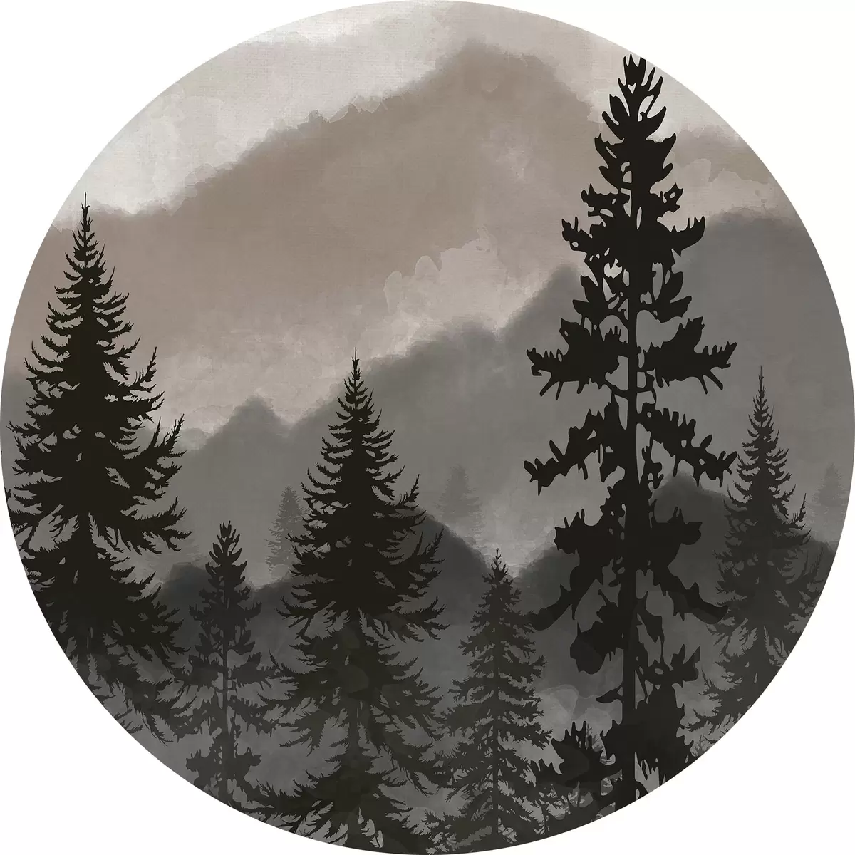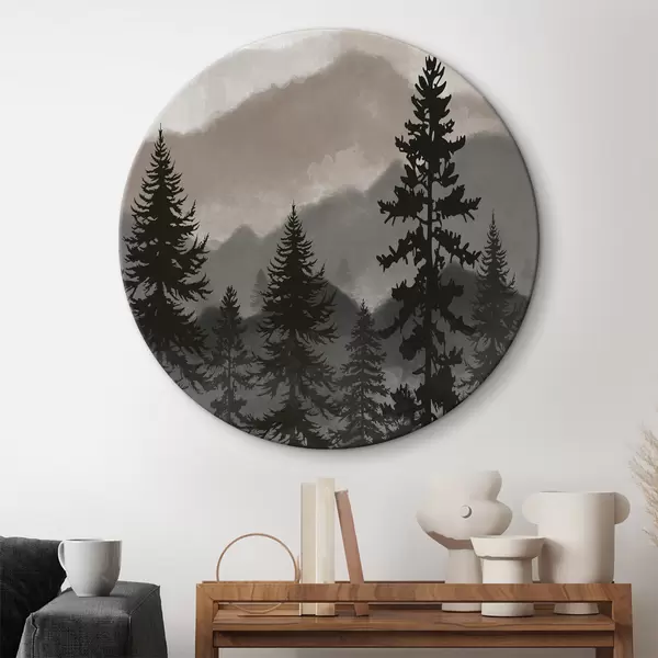 Cuadros redondos Paisaje de montaña con abetos en acuarela r37017v1