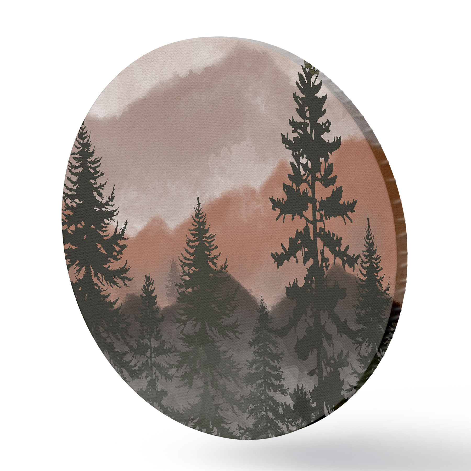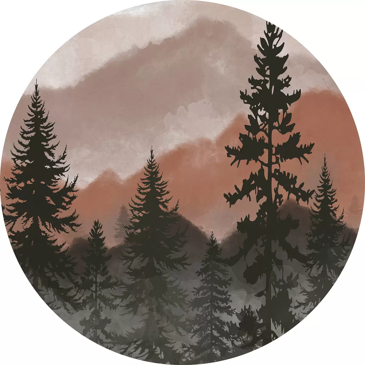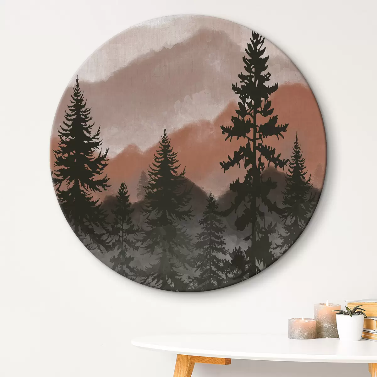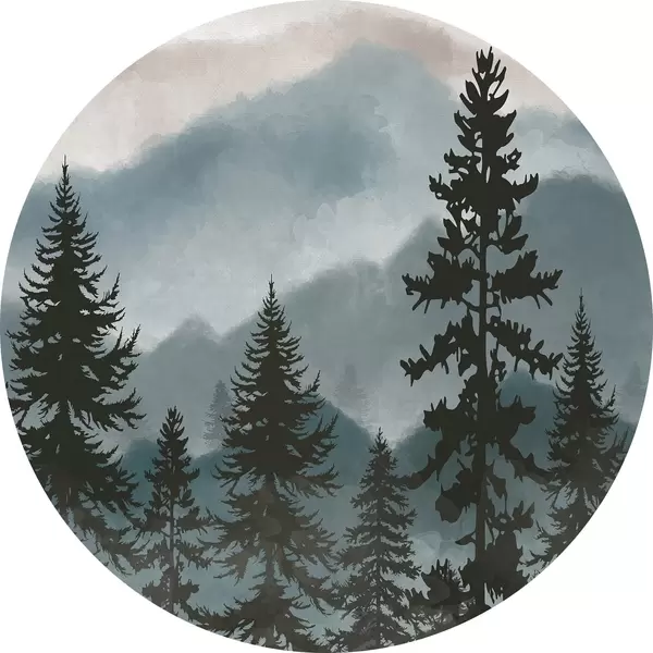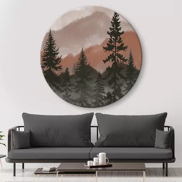 Cuadros redondos Paisaje de montaña con abetos en acuarela r37017v2