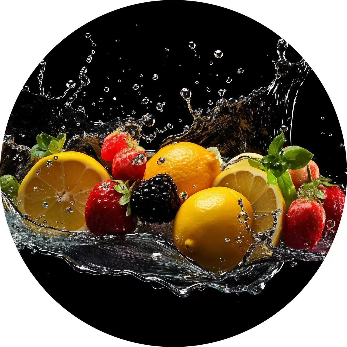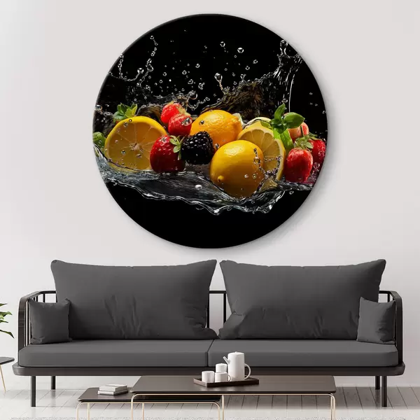 Cuadros redondos Frutas en salpicaduras de agua r37044