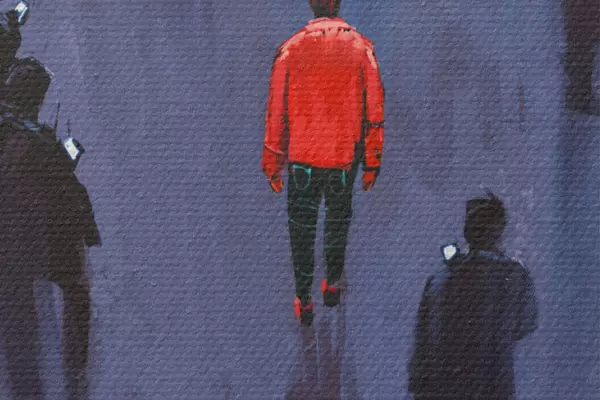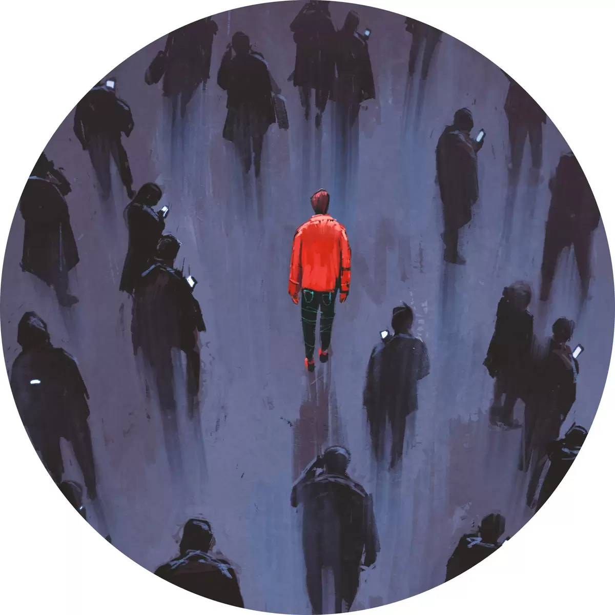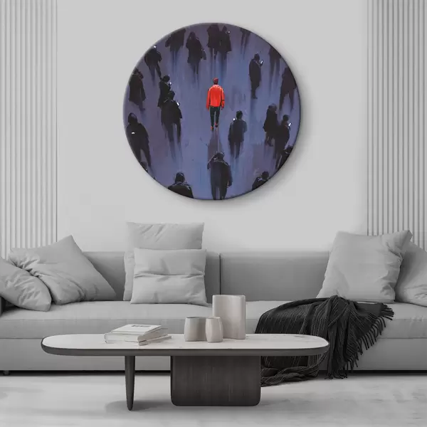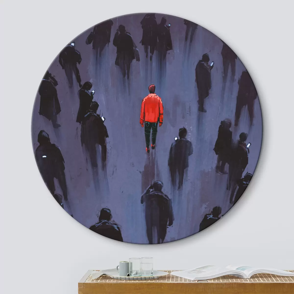Cuadros redondos Un hombre de pie entre una multitud r37093