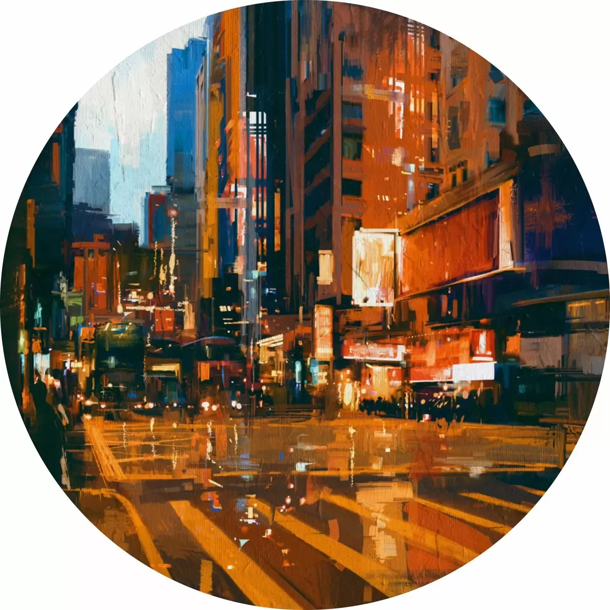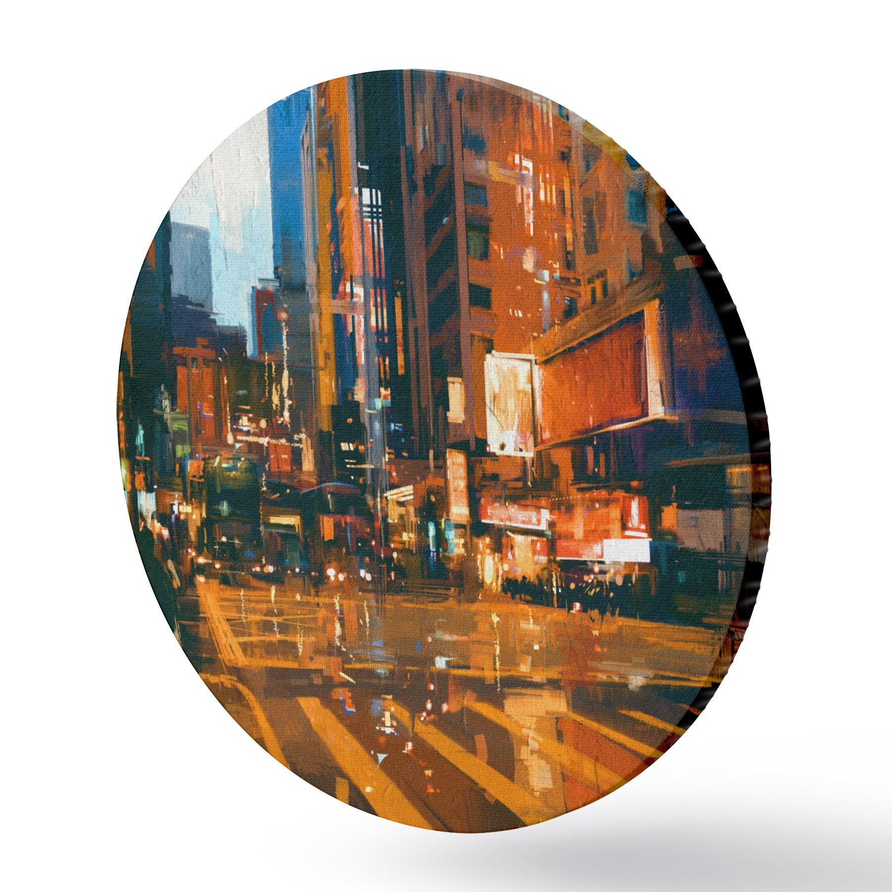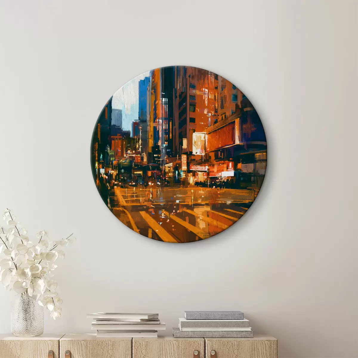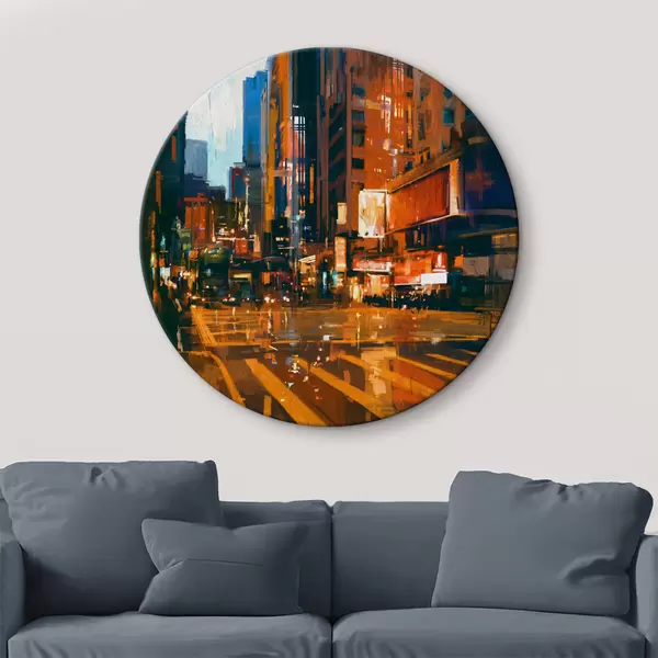 Cuadros redondos Calle urbana con edificios y luces r37095