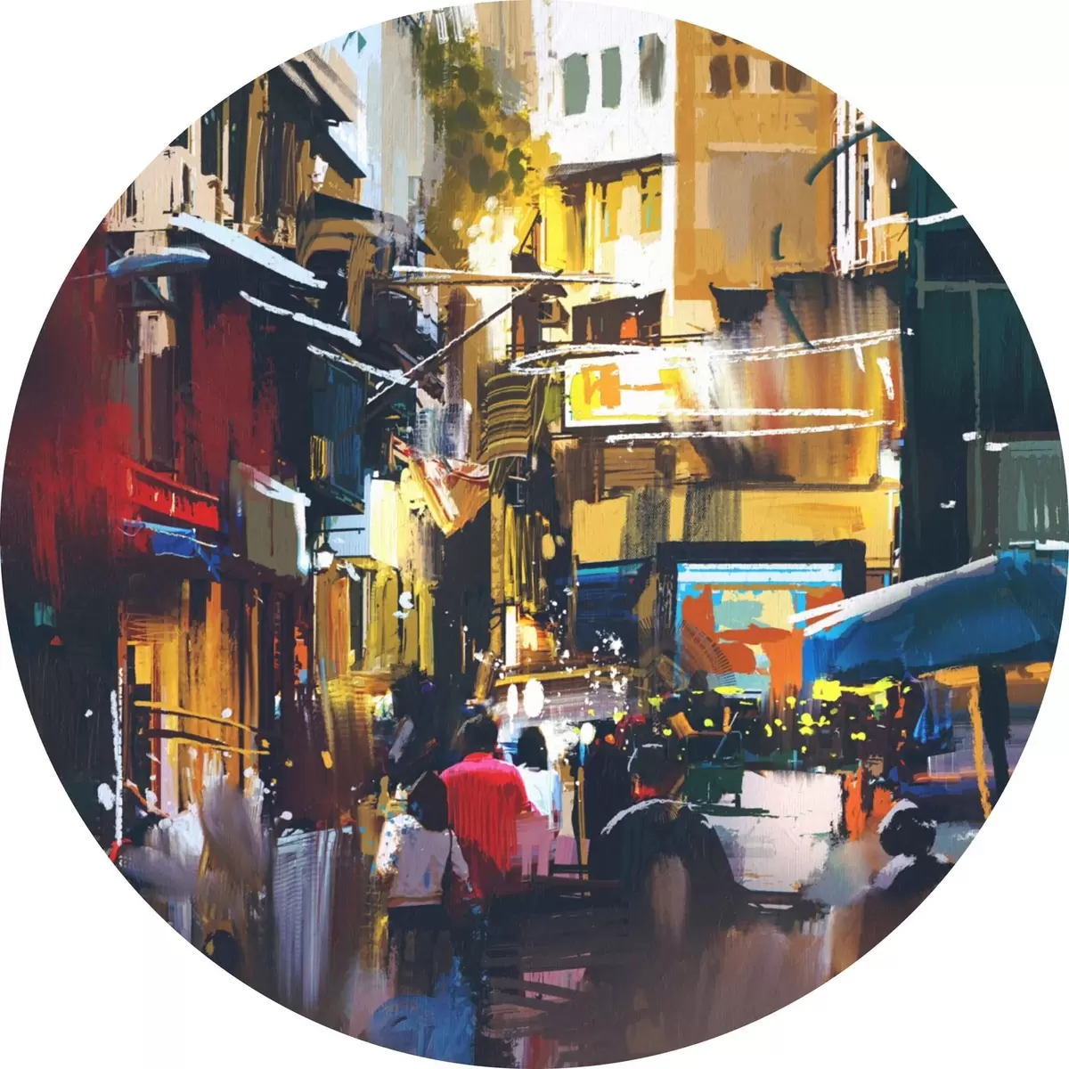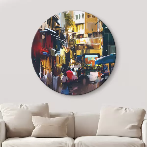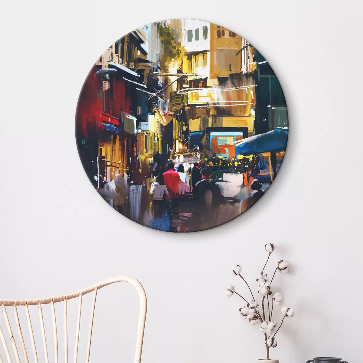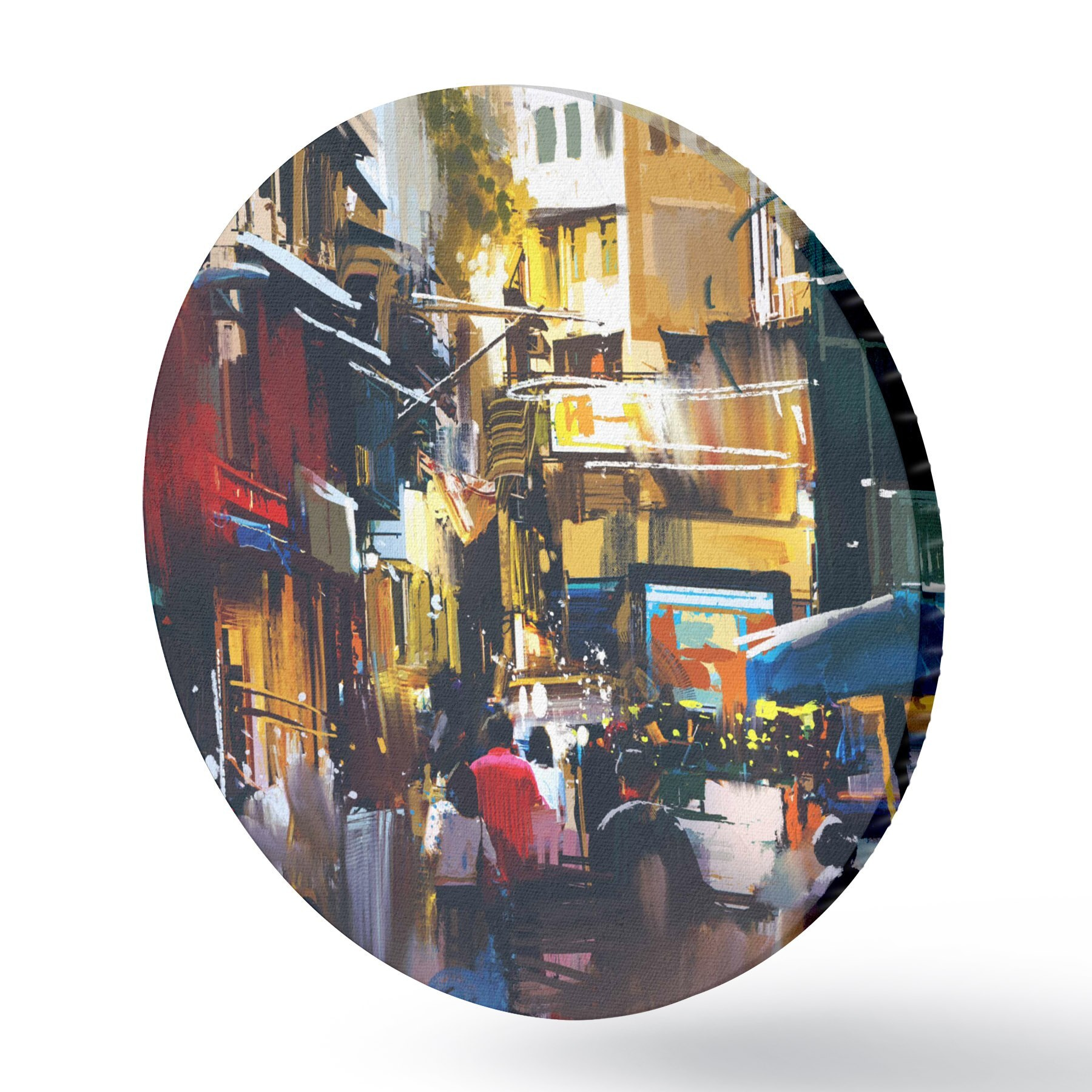 Cuadros redondos Calle con edificios y gente caminando r37096