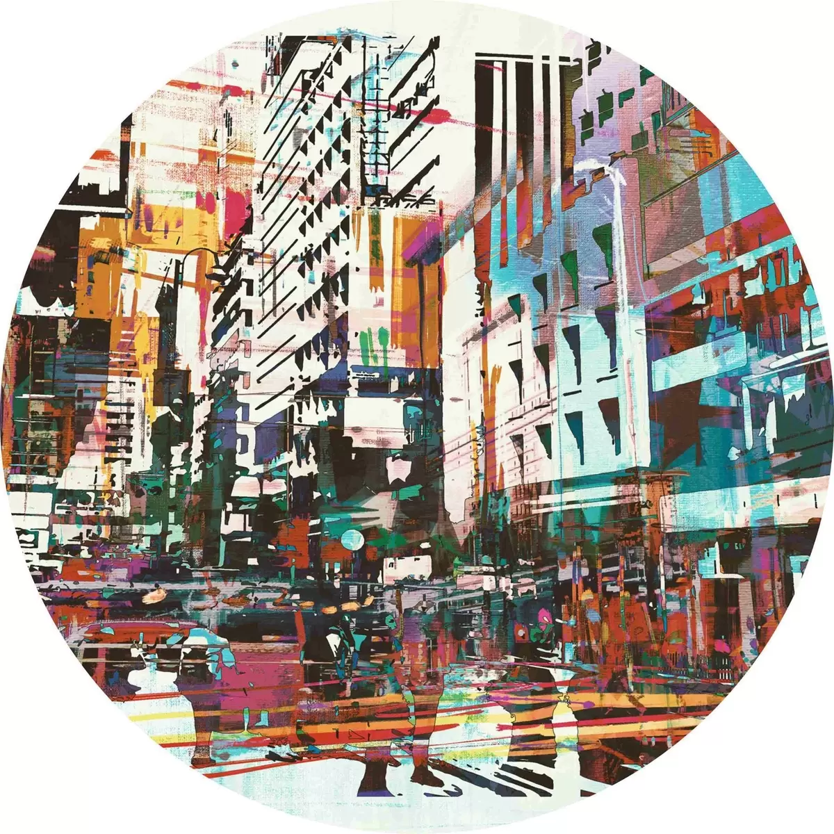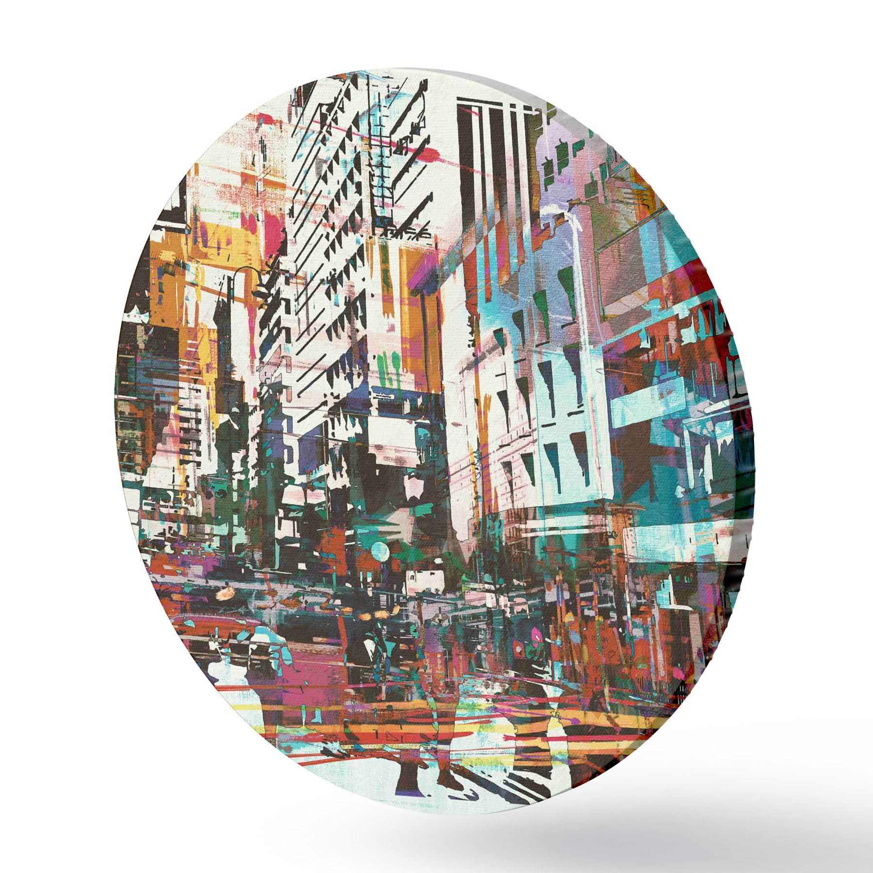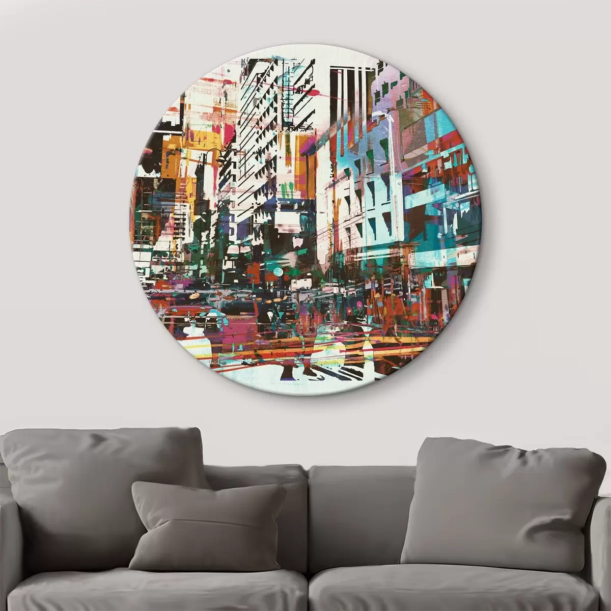 Cuadros redondos Ajetreada calle de una metrópolis con templos de estilo grunge r37101