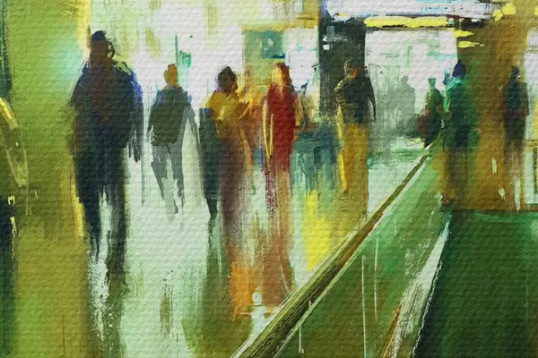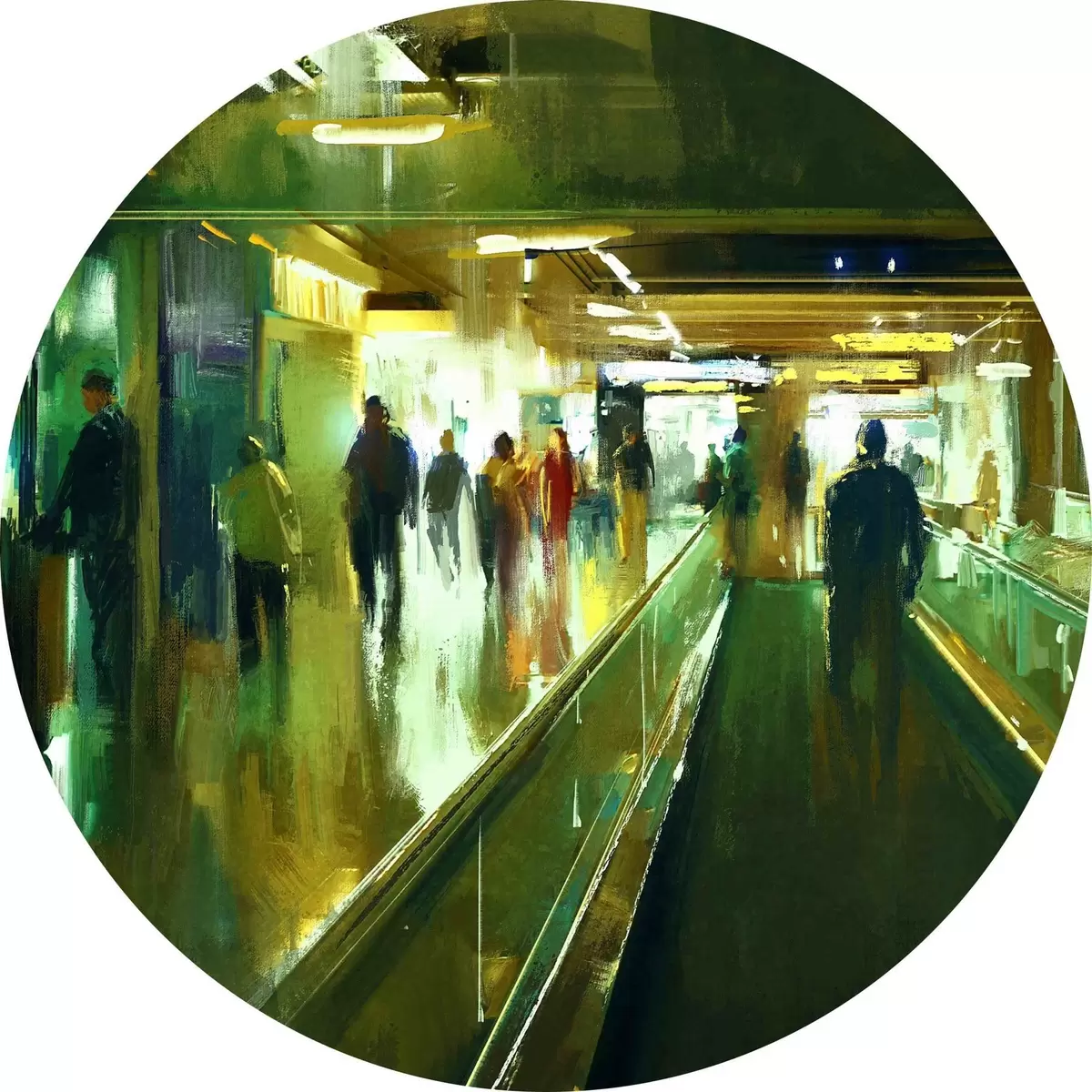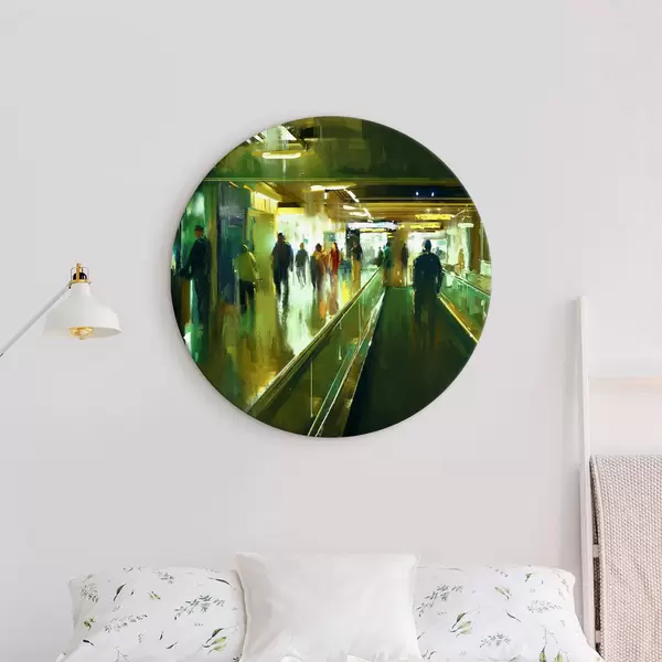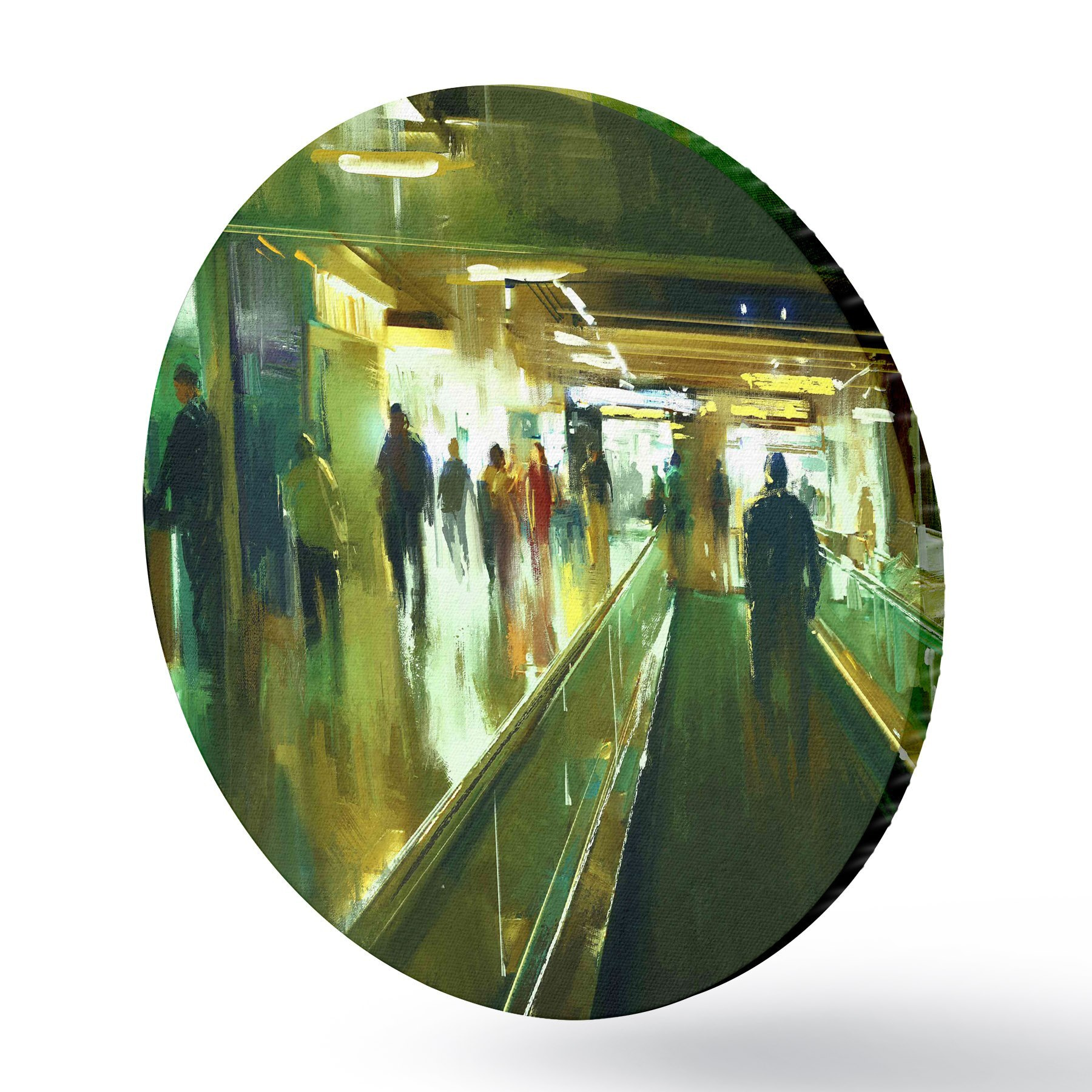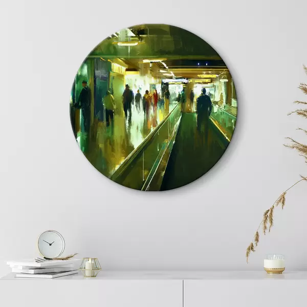 Cuadros redondos Un grupo de personas caminando por una escalera mecánica r37103