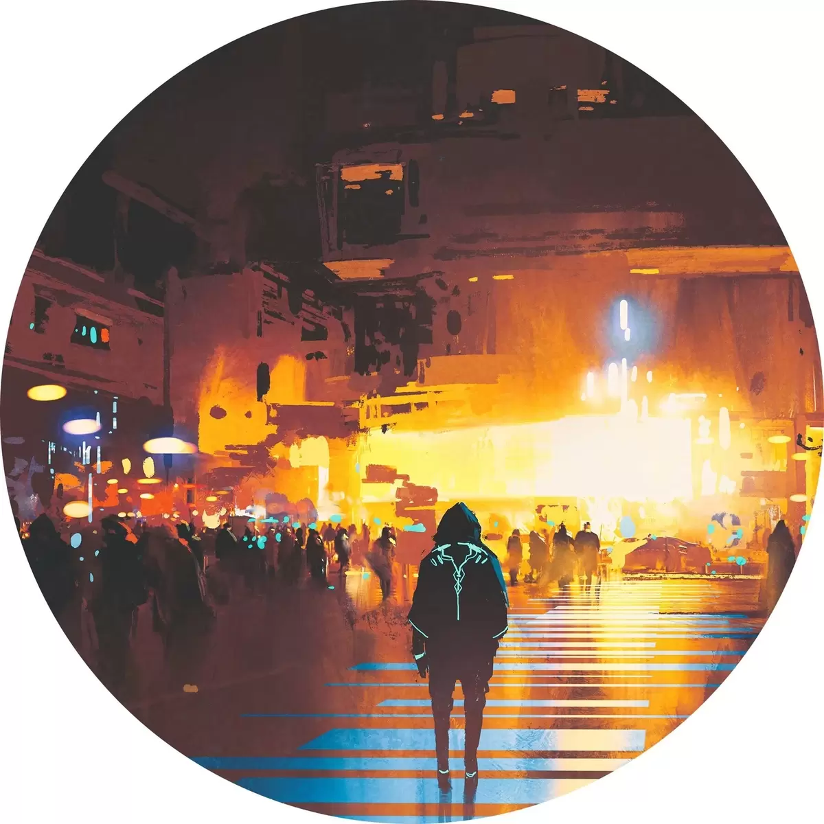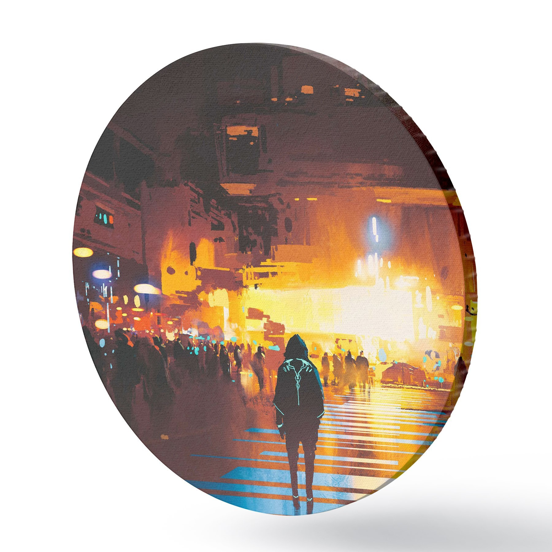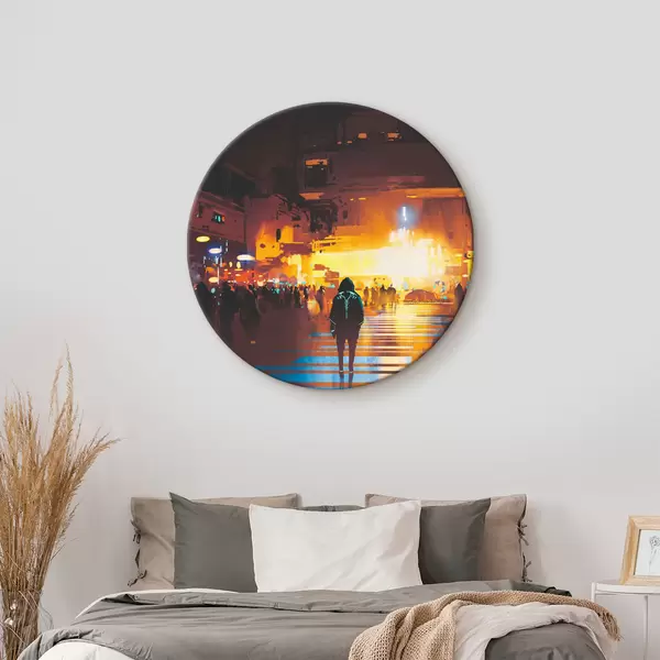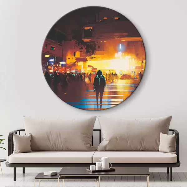 Cuadros redondos Una persona caminando por la calle r37104