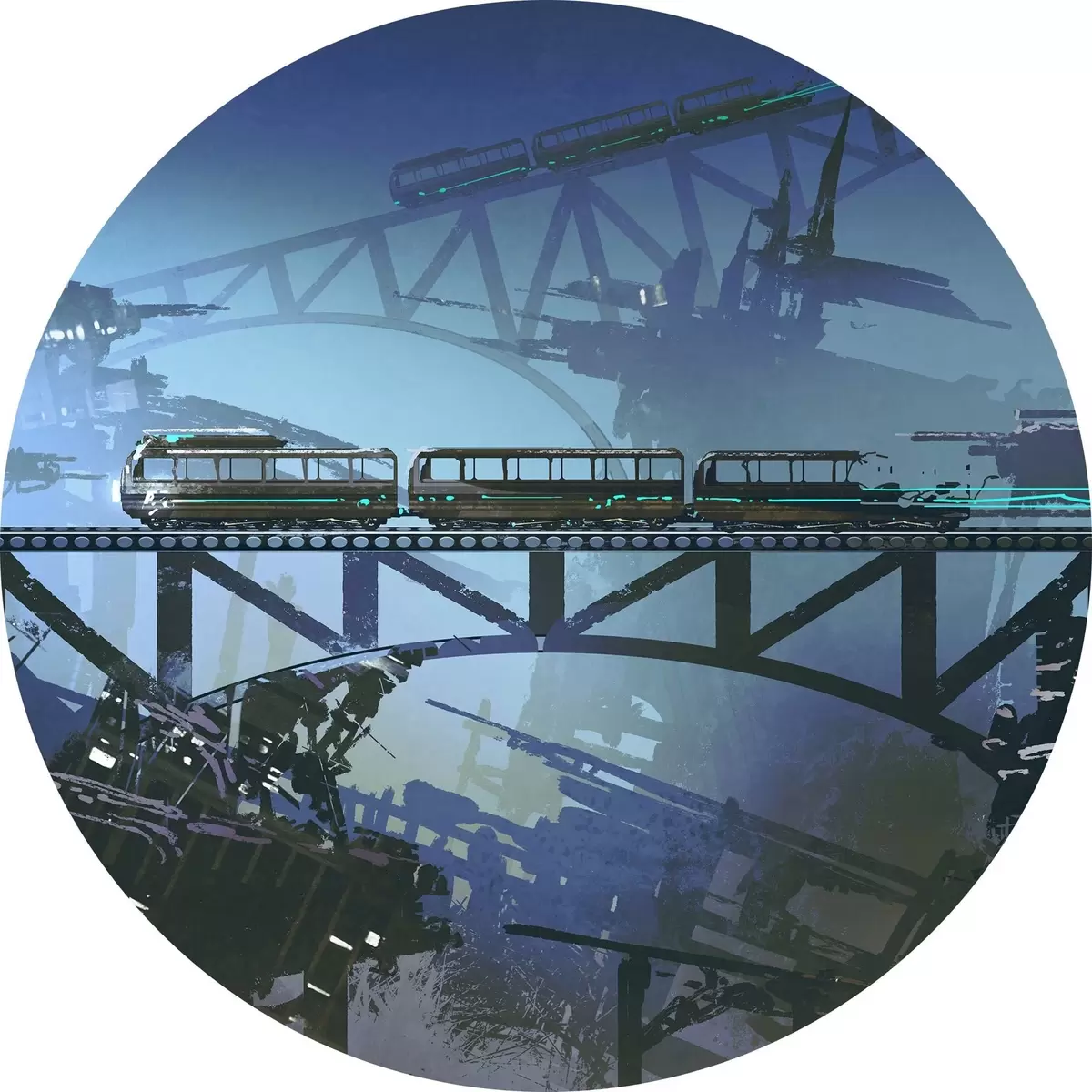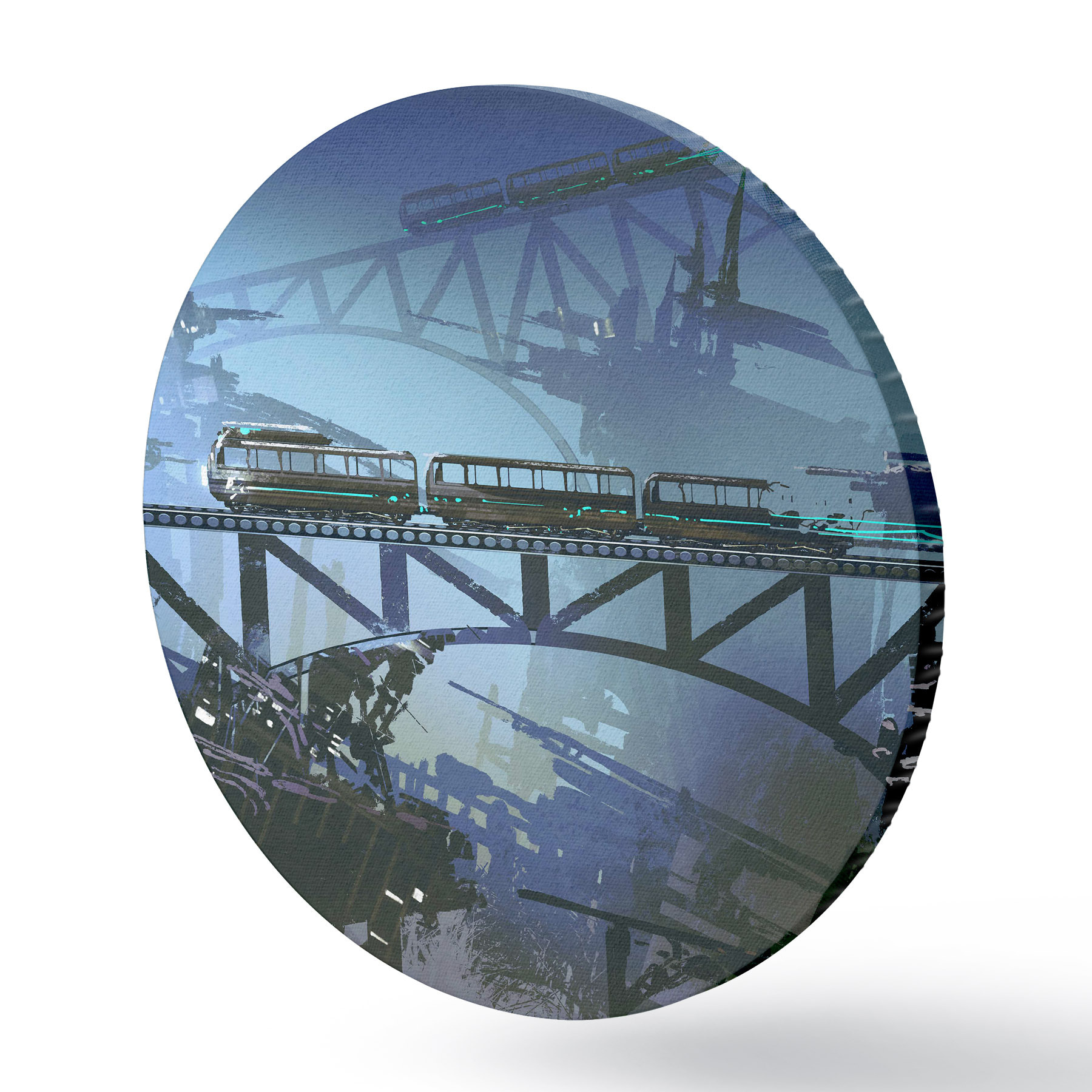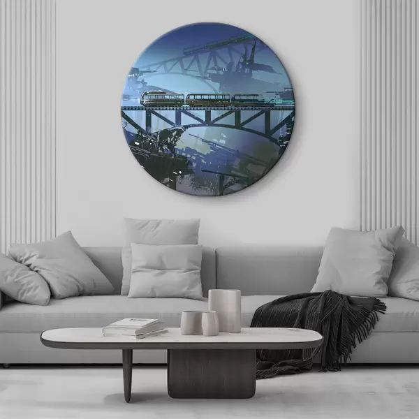 Cuadros redondos Tren en el puente sobre la ciudad r37106