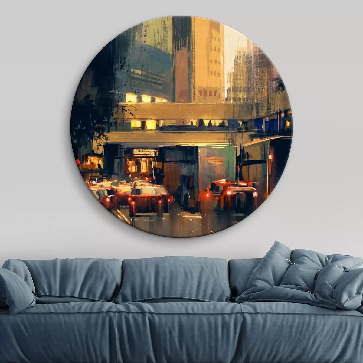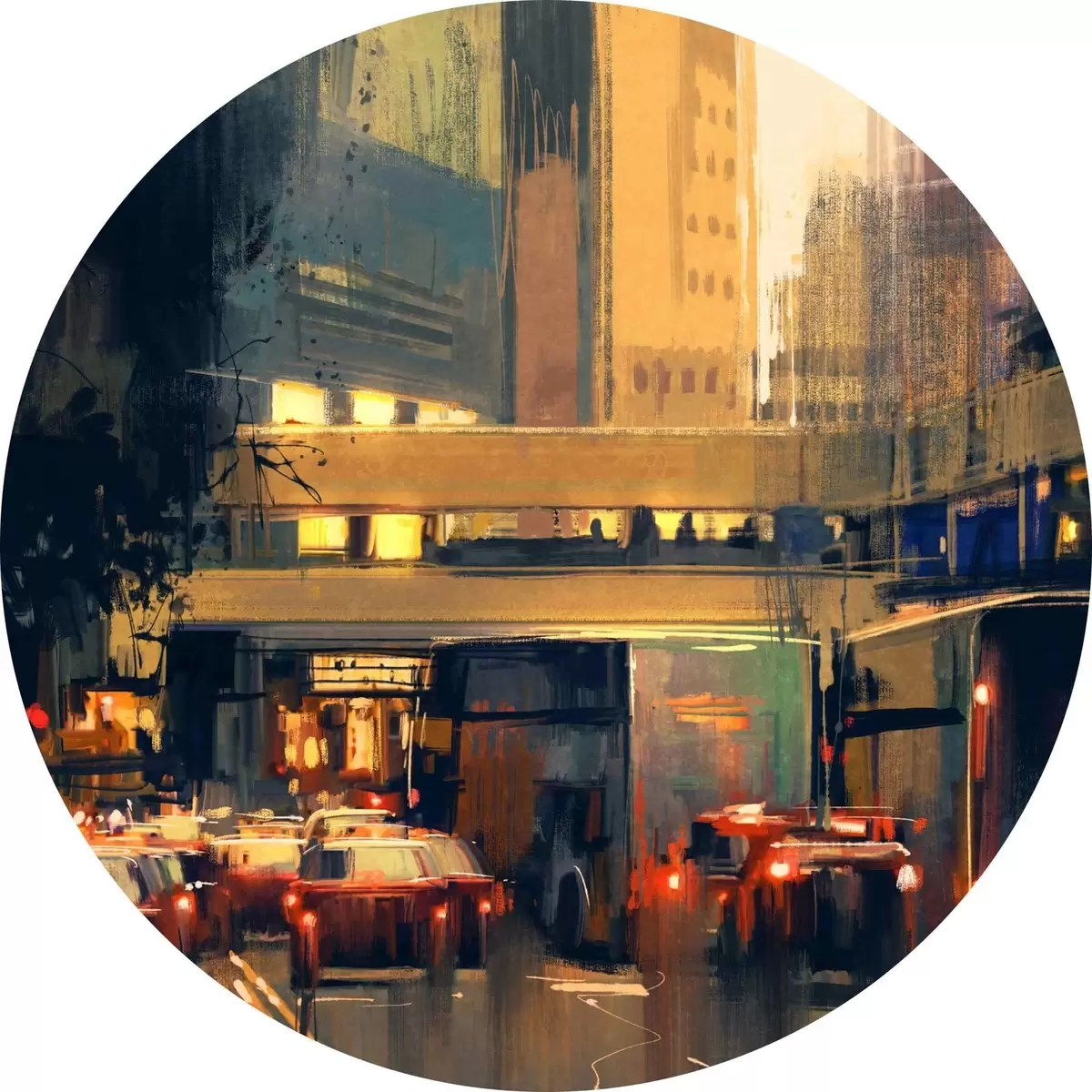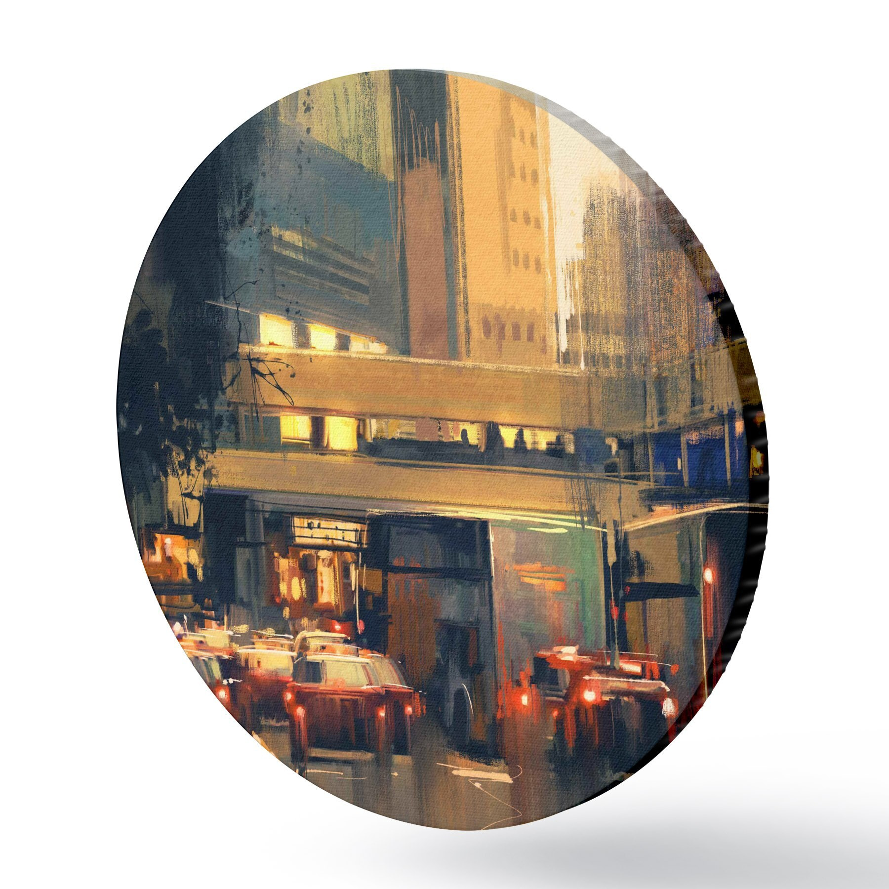 Cuadros redondos Calle con coches y edificios r37110