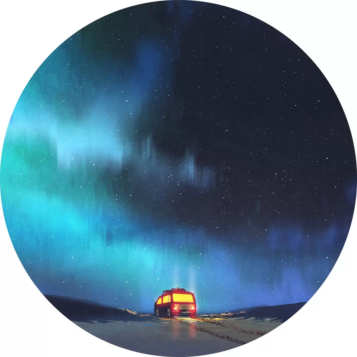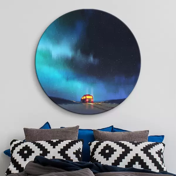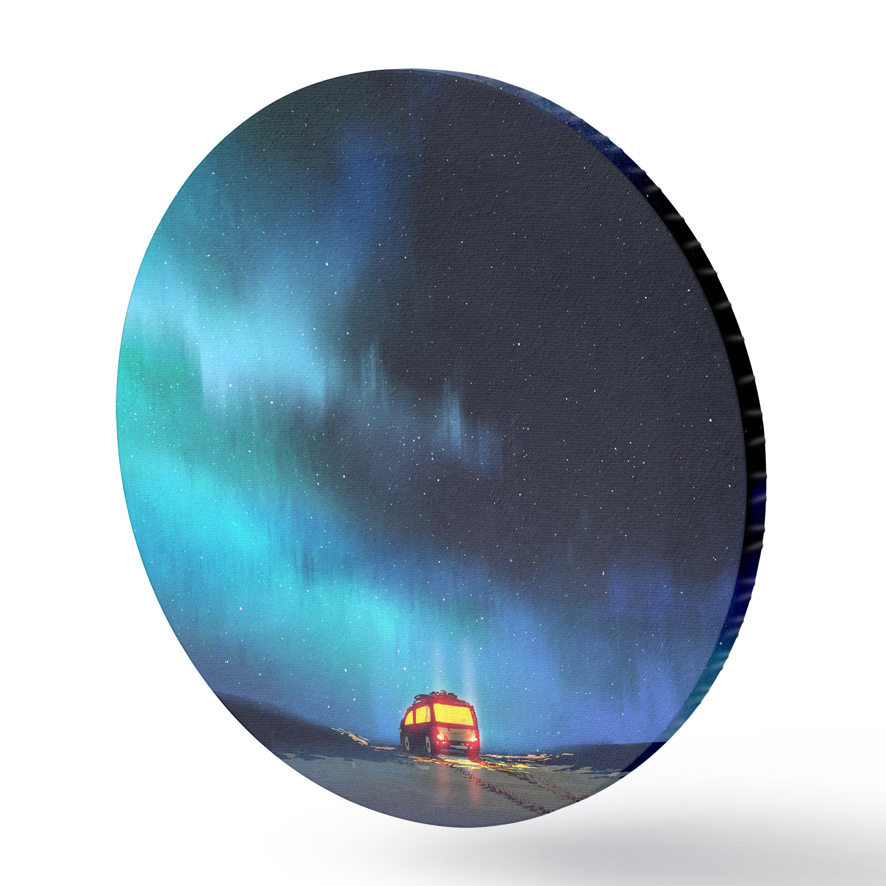 Cuadros redondos Autobús en una carretera nevada con luces en el cielo r37111