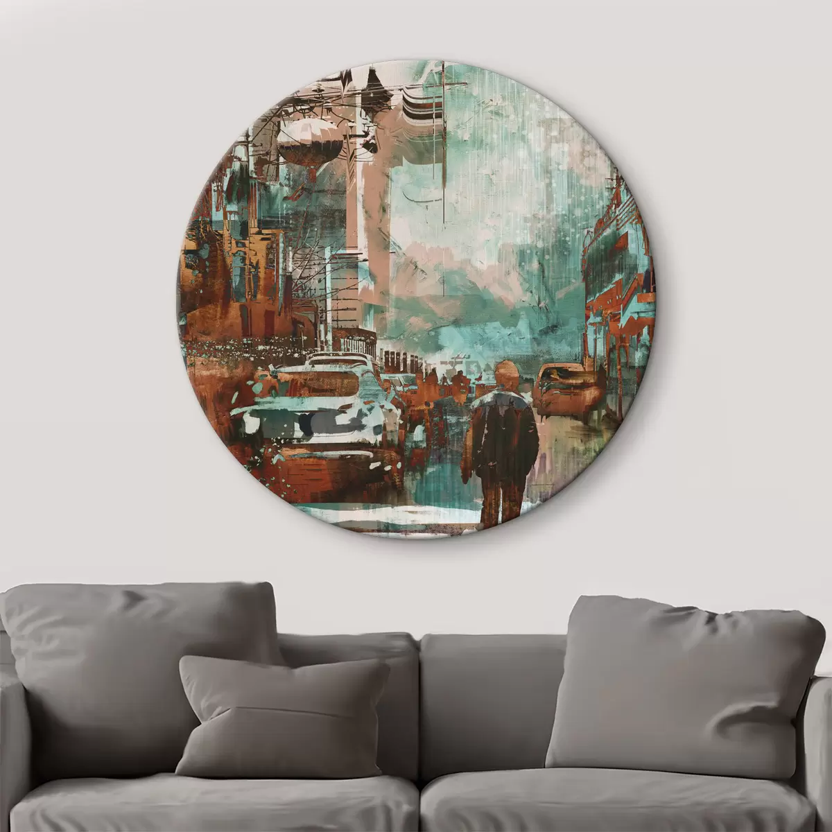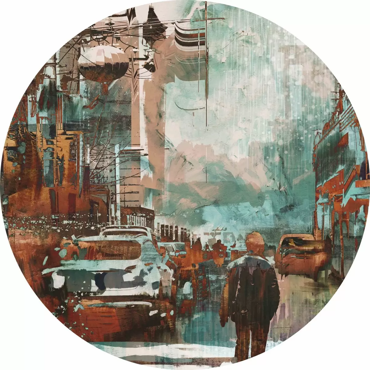 Cuadros redondos Gran metrópolis retro de estilo grunge r37112