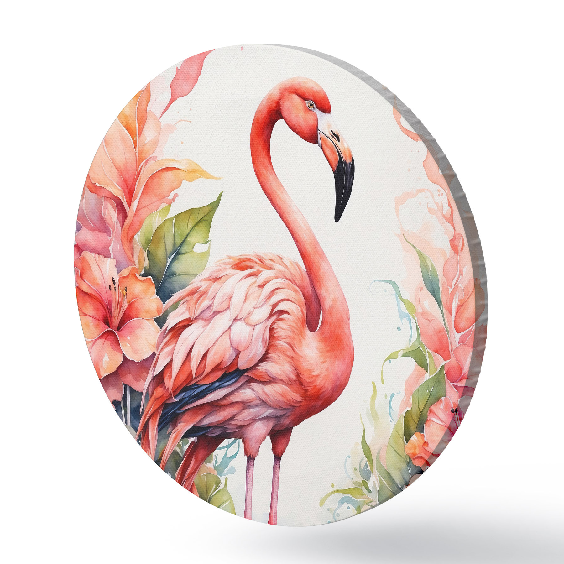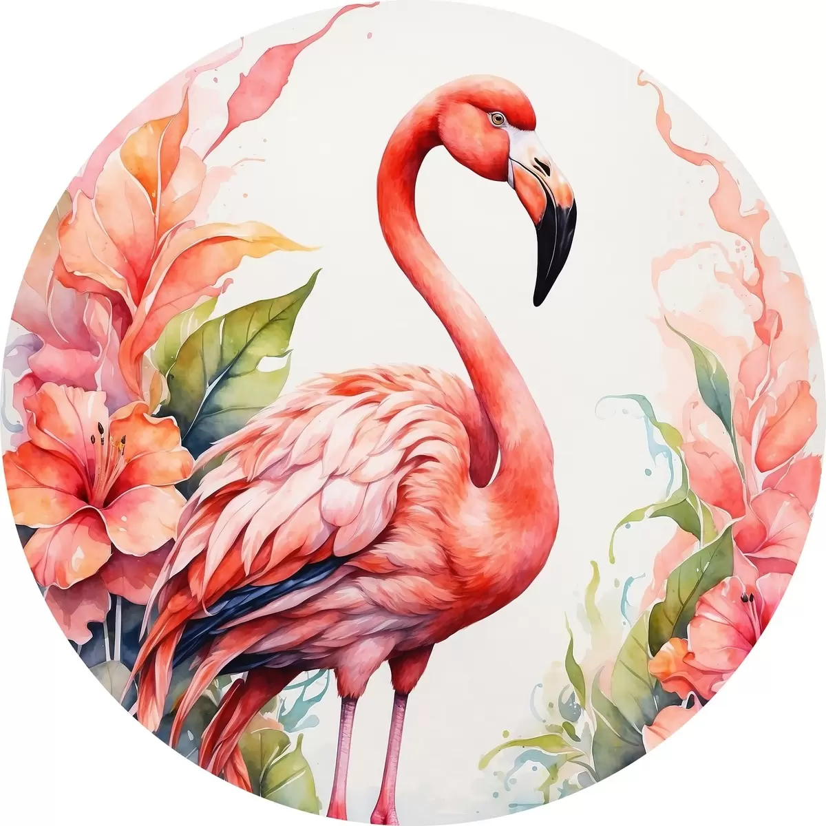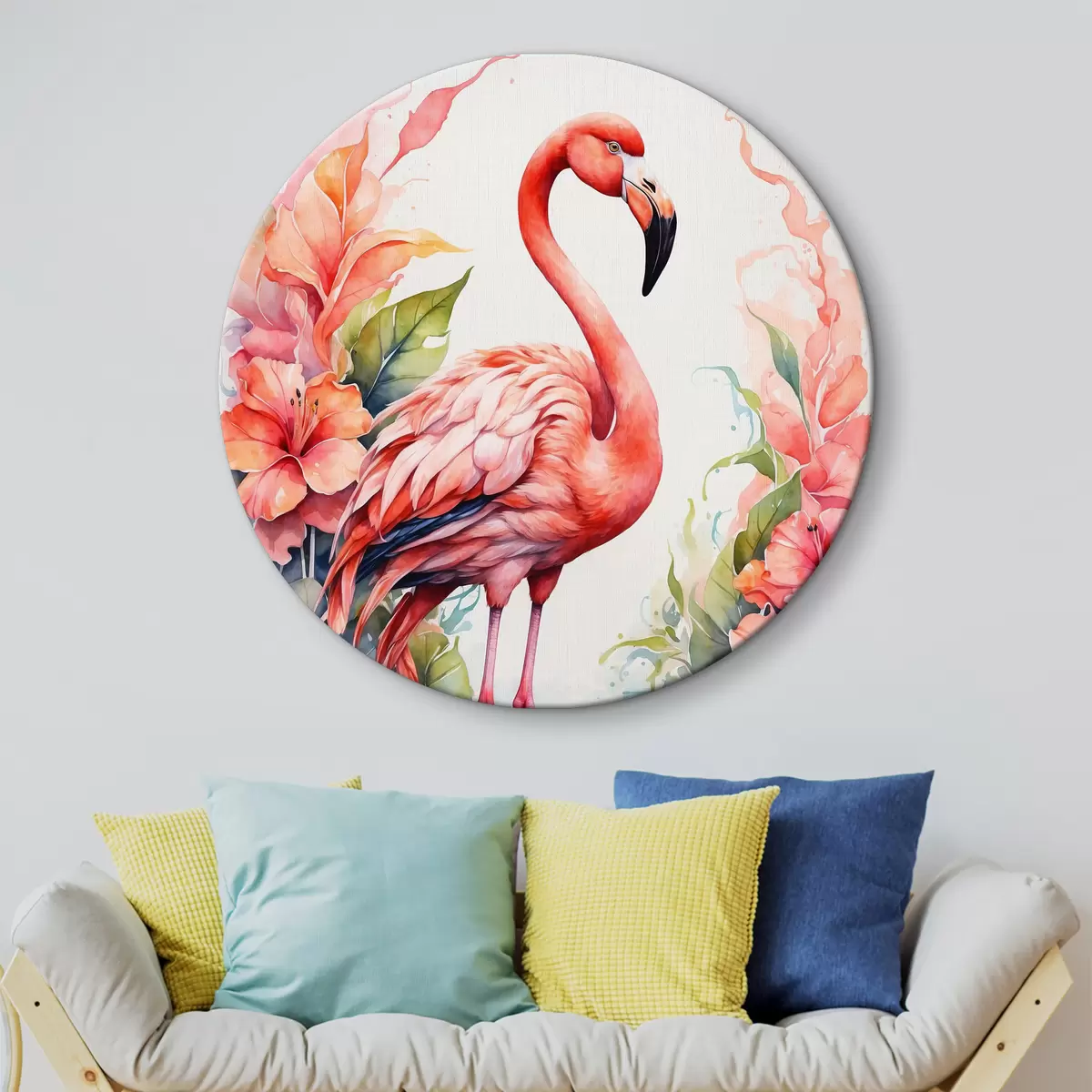 Cuadros redondos Flamenco con flores en acuarela r37125