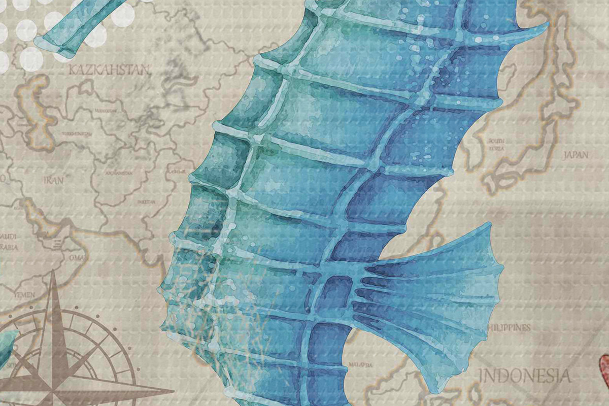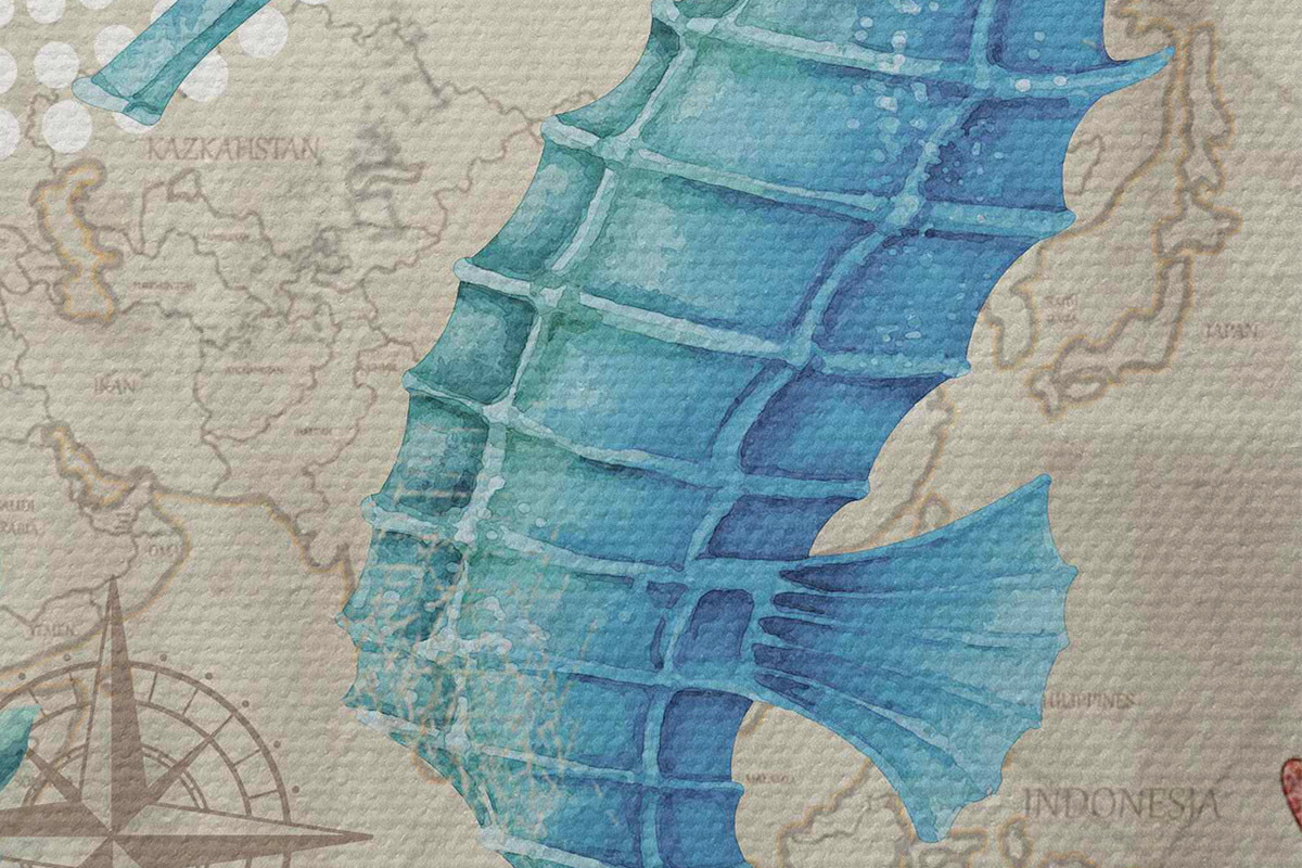 Foto Caballito de mar y algas en el mapa Nr r37152