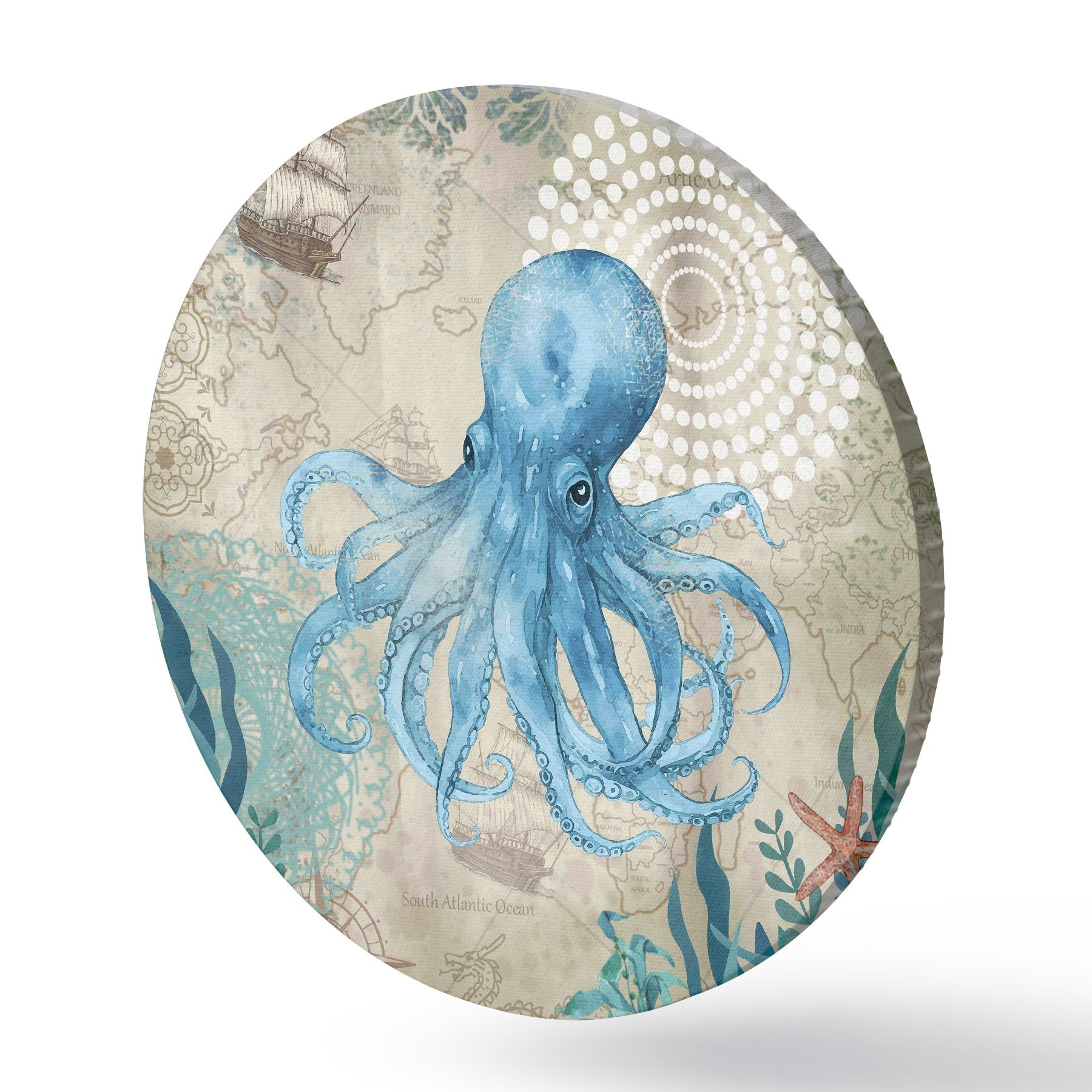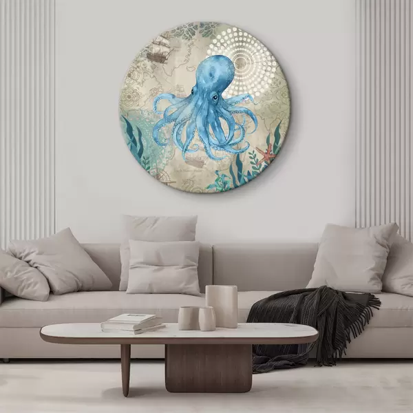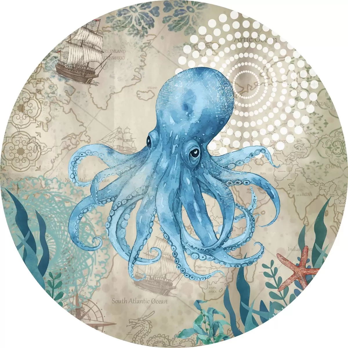 Cuadros redondos Pulpo azul con mapa oceánico r37154
