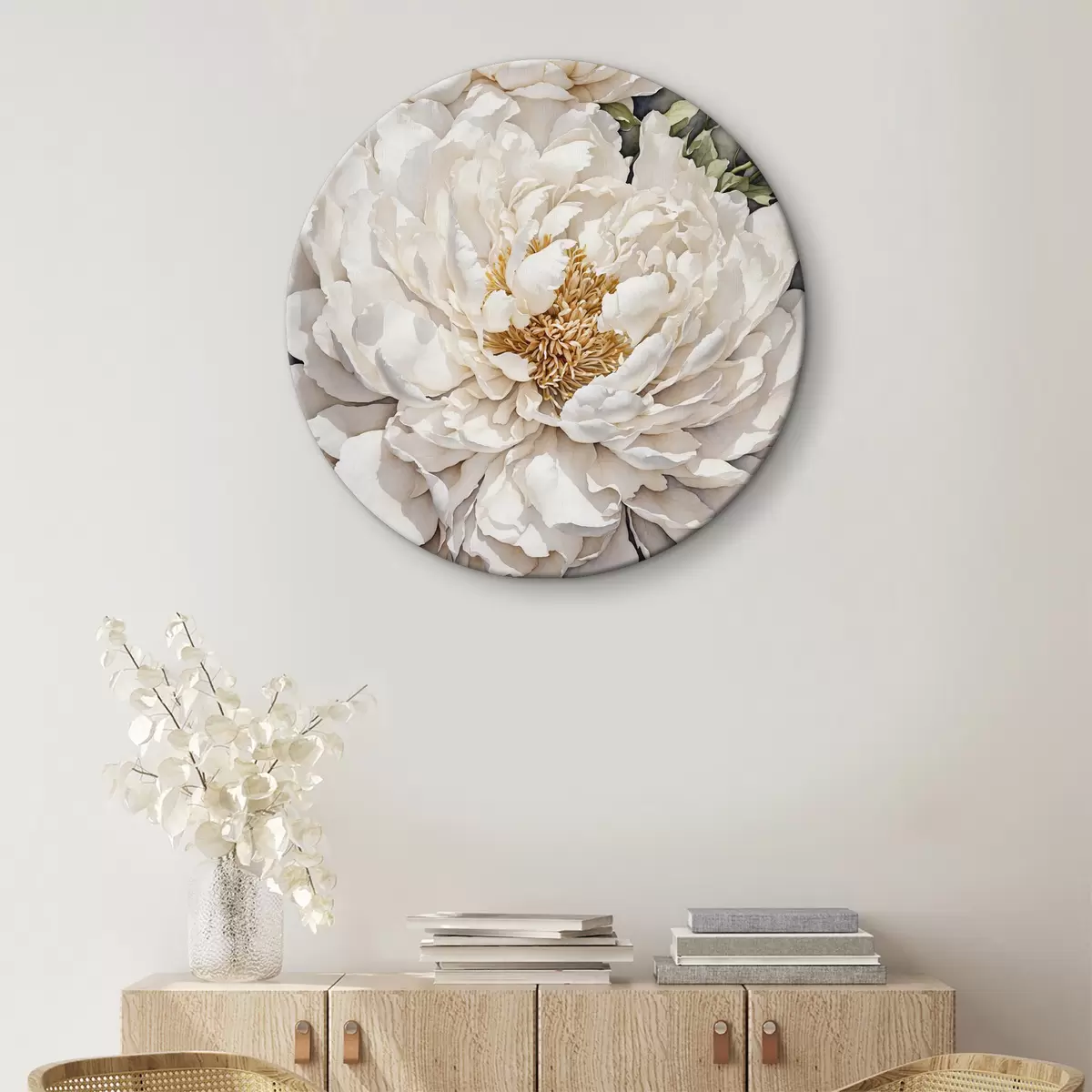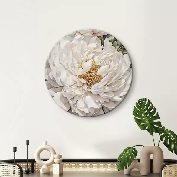 Cuadros redondos Peonía blanca sobre fondo gris r37160