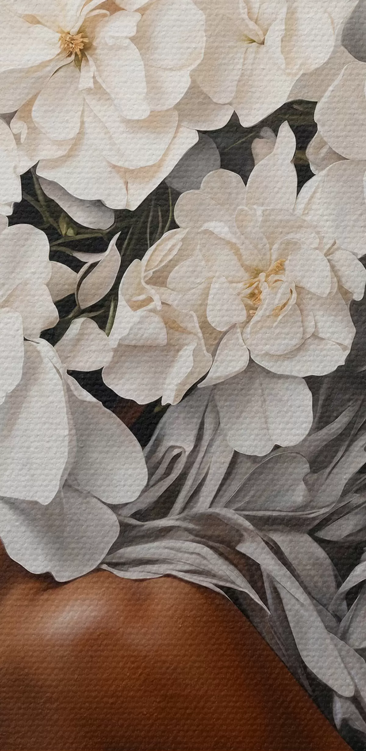 Foto Mujer con flores blancas sobre fondo negro Nr r37163