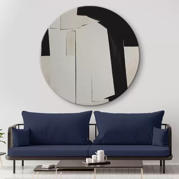 Cuadros redondos Abstracción en acuarela en blanco y negro r37169