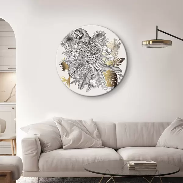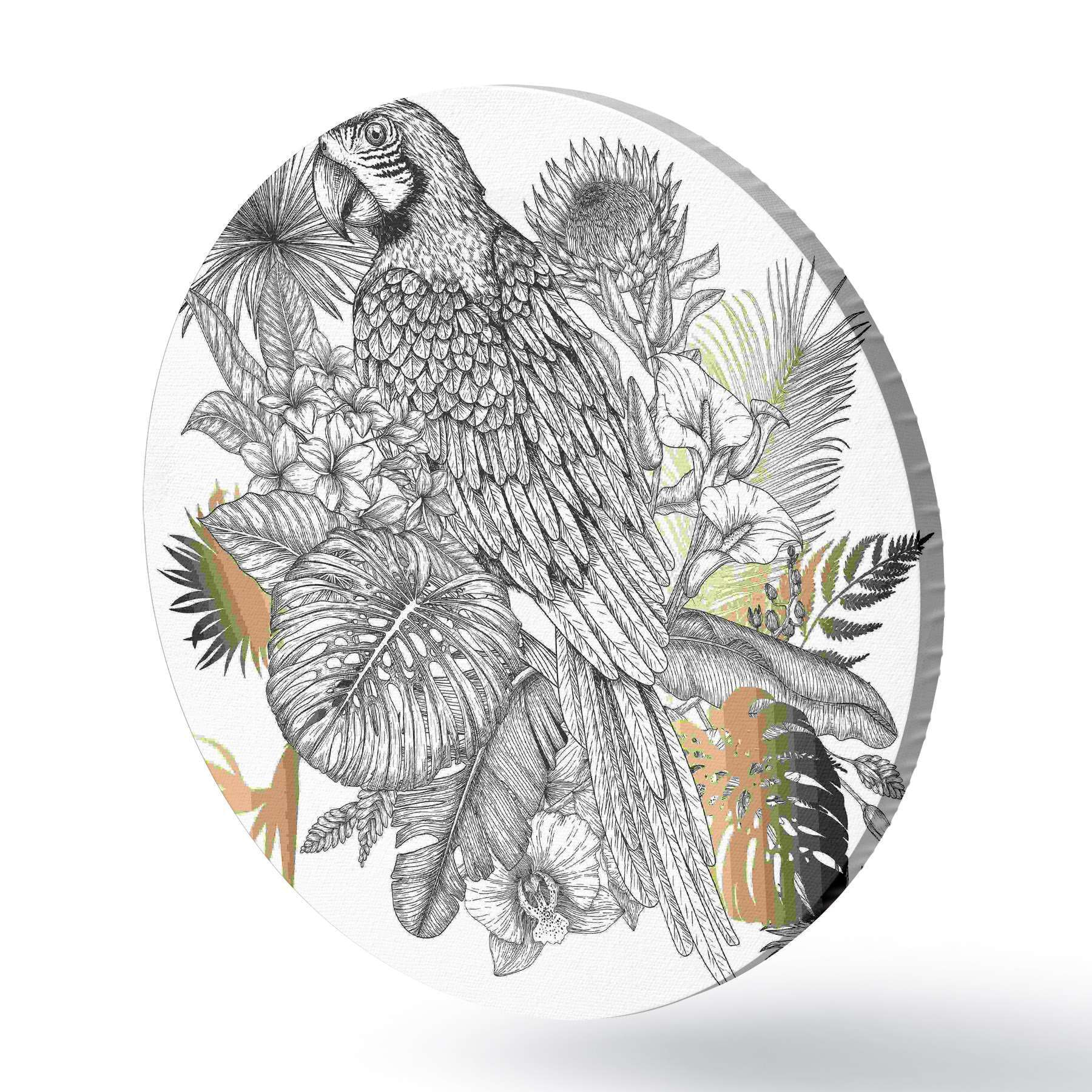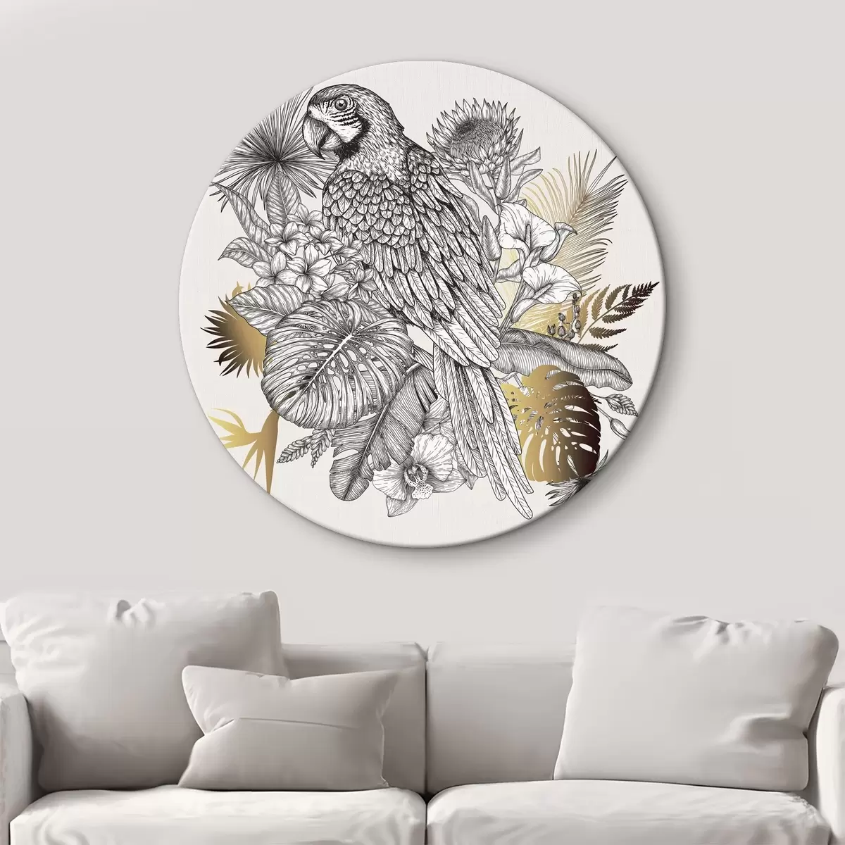 Cuadros redondos Un pájaro sentado en una rama con hojas r37182