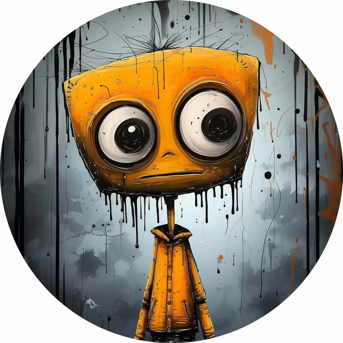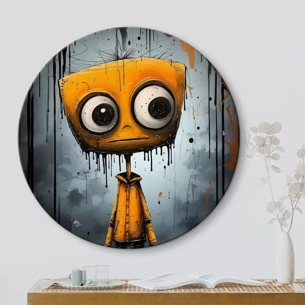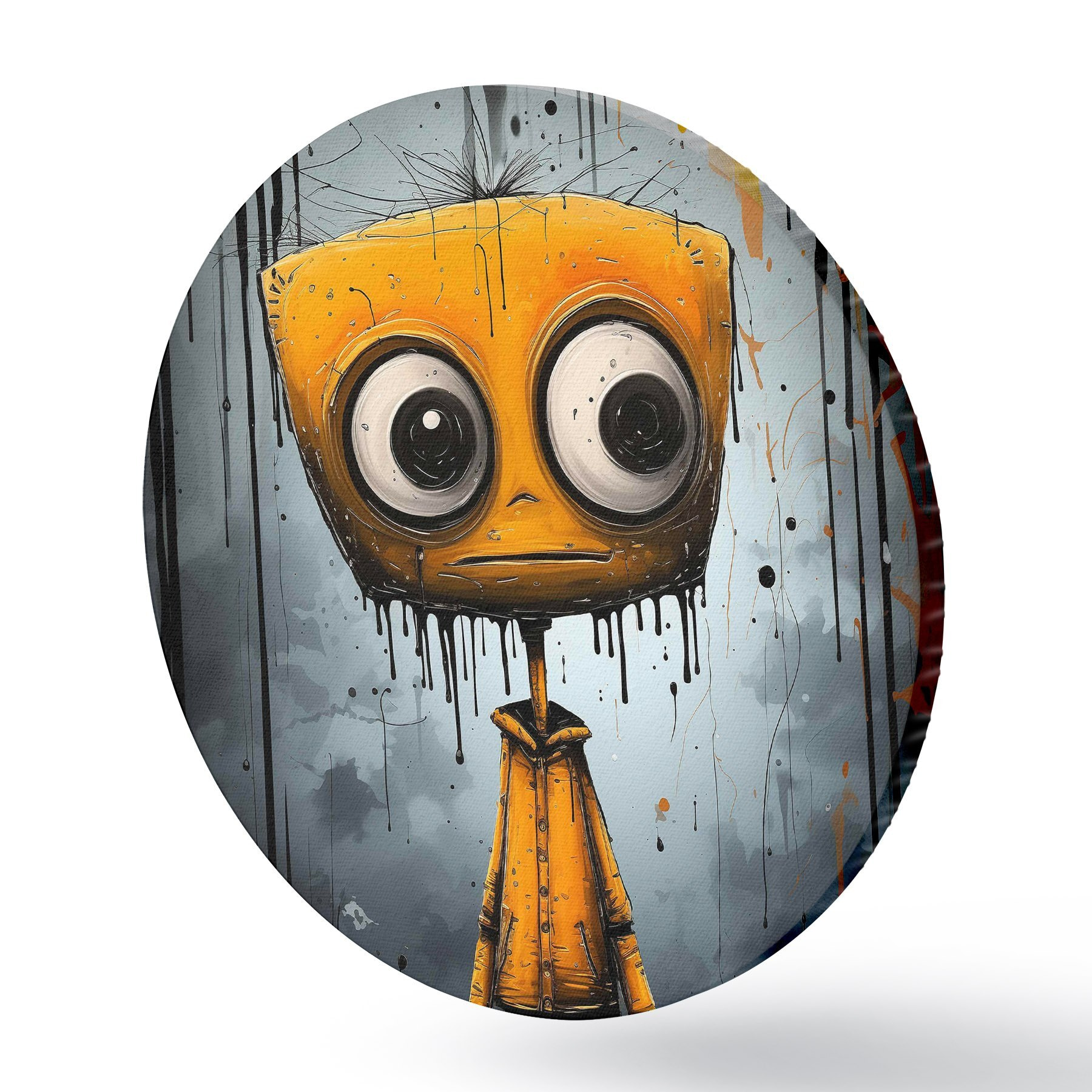 Cuadros redondos Personaje de dibujos animados con cabeza cuadrada y ojos grandes r37254