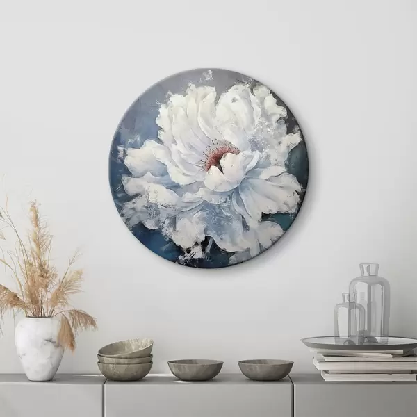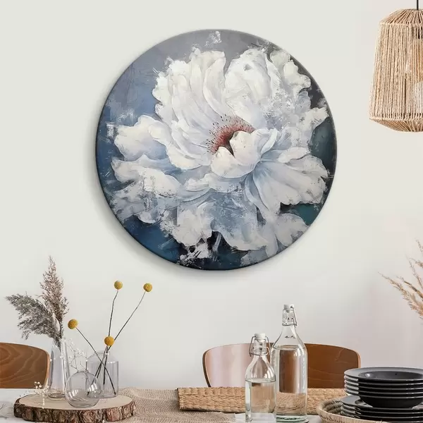 Cuadros redondos Flor blanca sobre fondo azul r37262