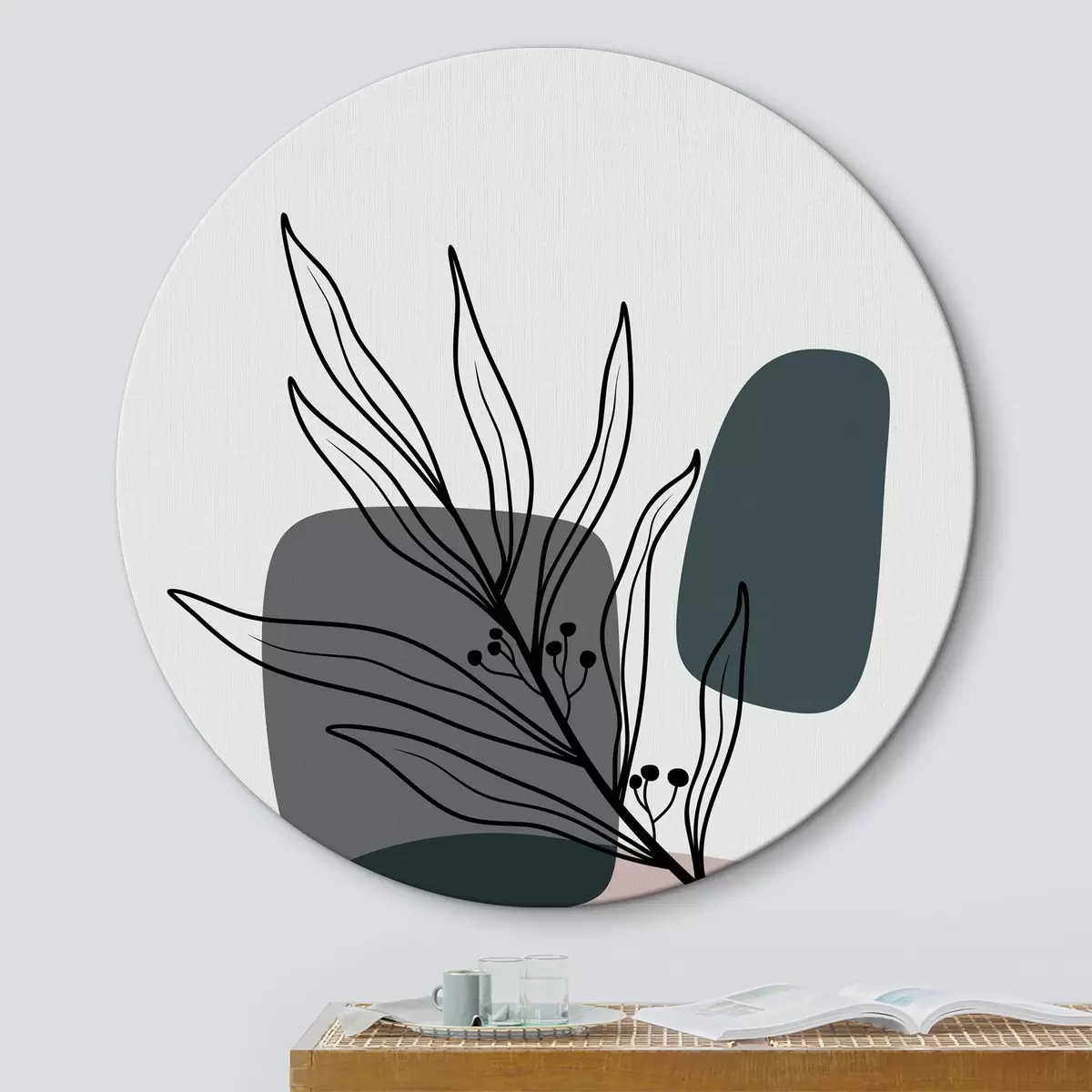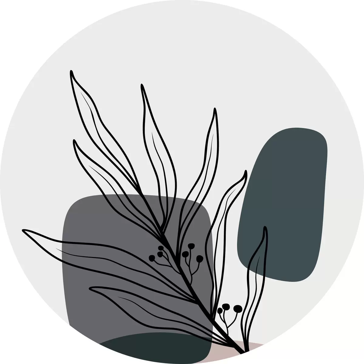 Cuadros redondos Planta con hojas y óvalos r37270