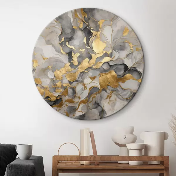 Cuadros redondos Abstracción con acuarelas azules y doradas r37331