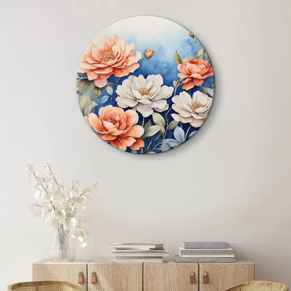 Cuadros redondos Imagen de flores sobre fondo azul r37332