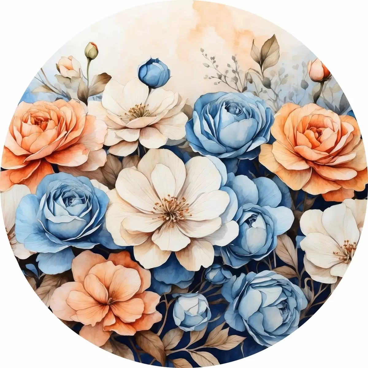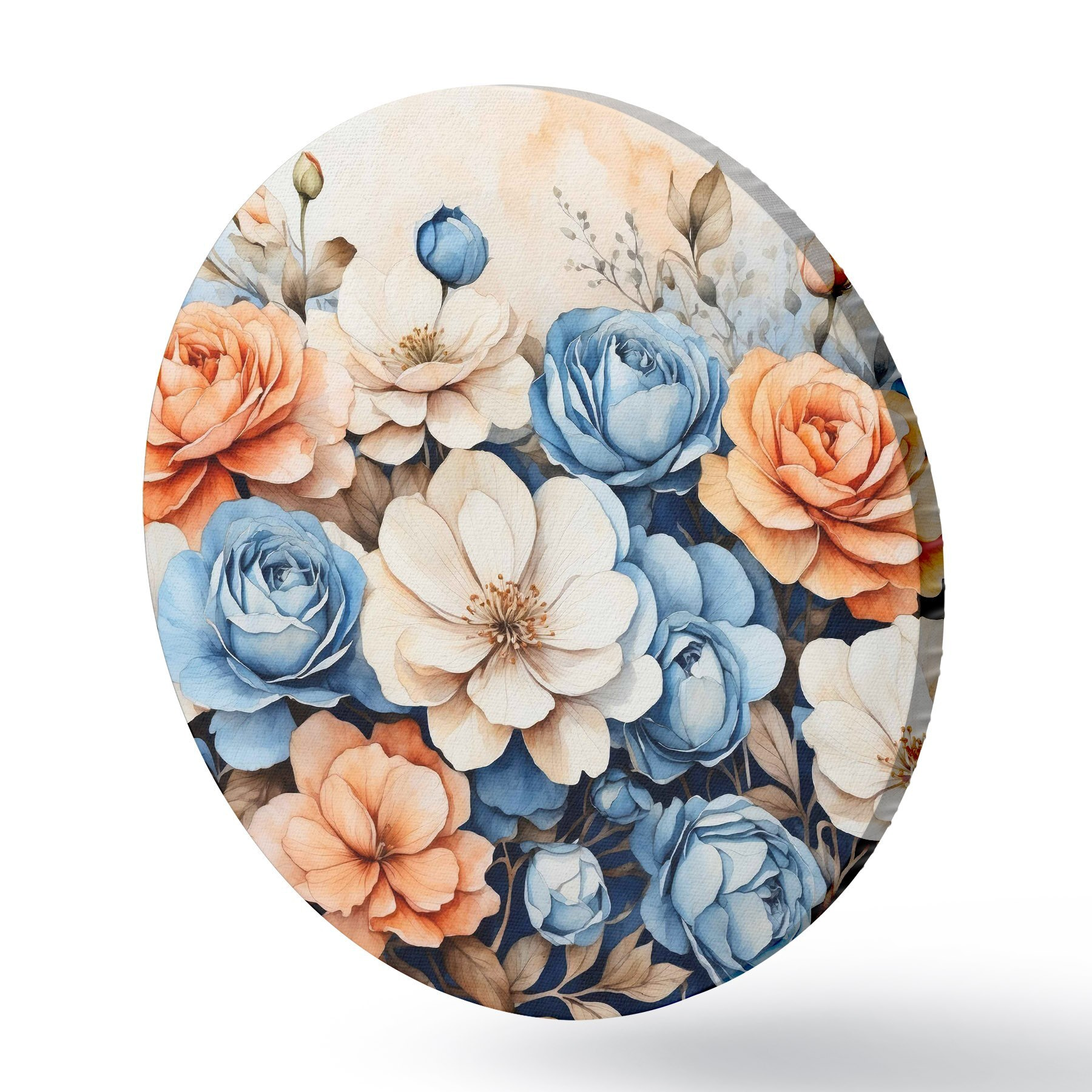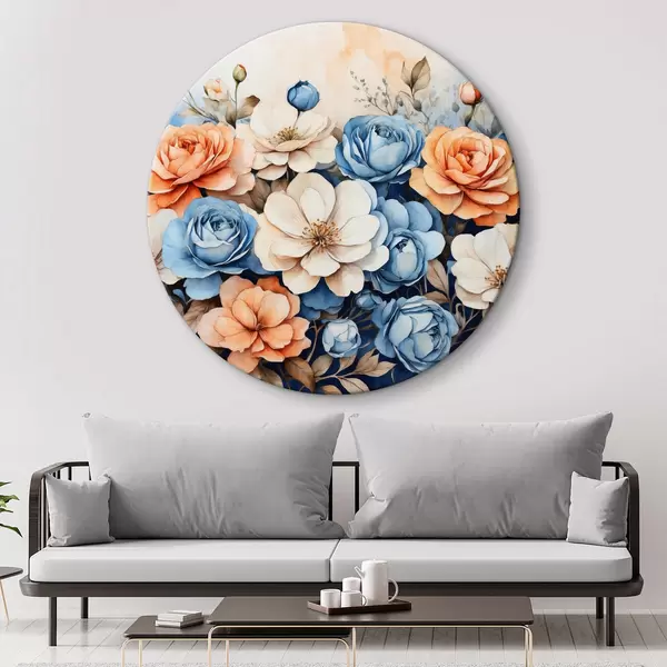 Cuadros redondos Imagen de flores sobre fondo azul r37335