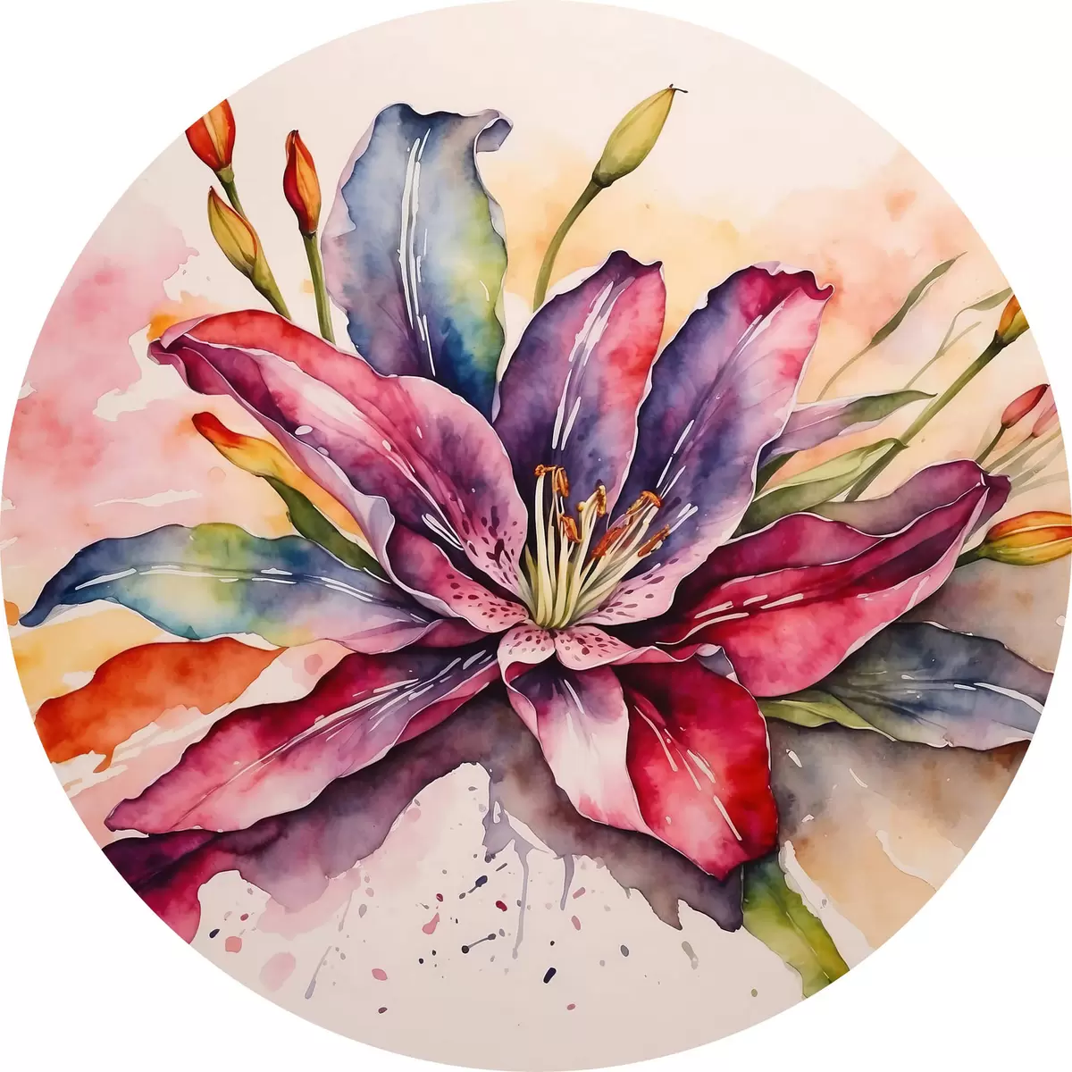 Cuadros redondos Pintura en acuarela de una flor r37339