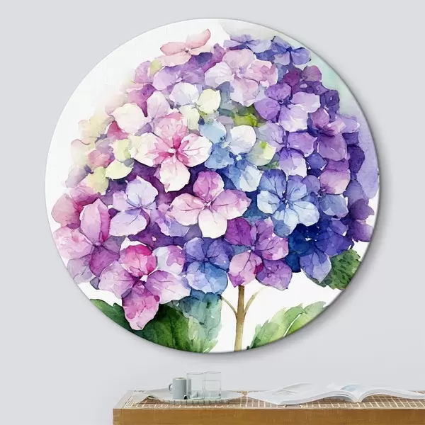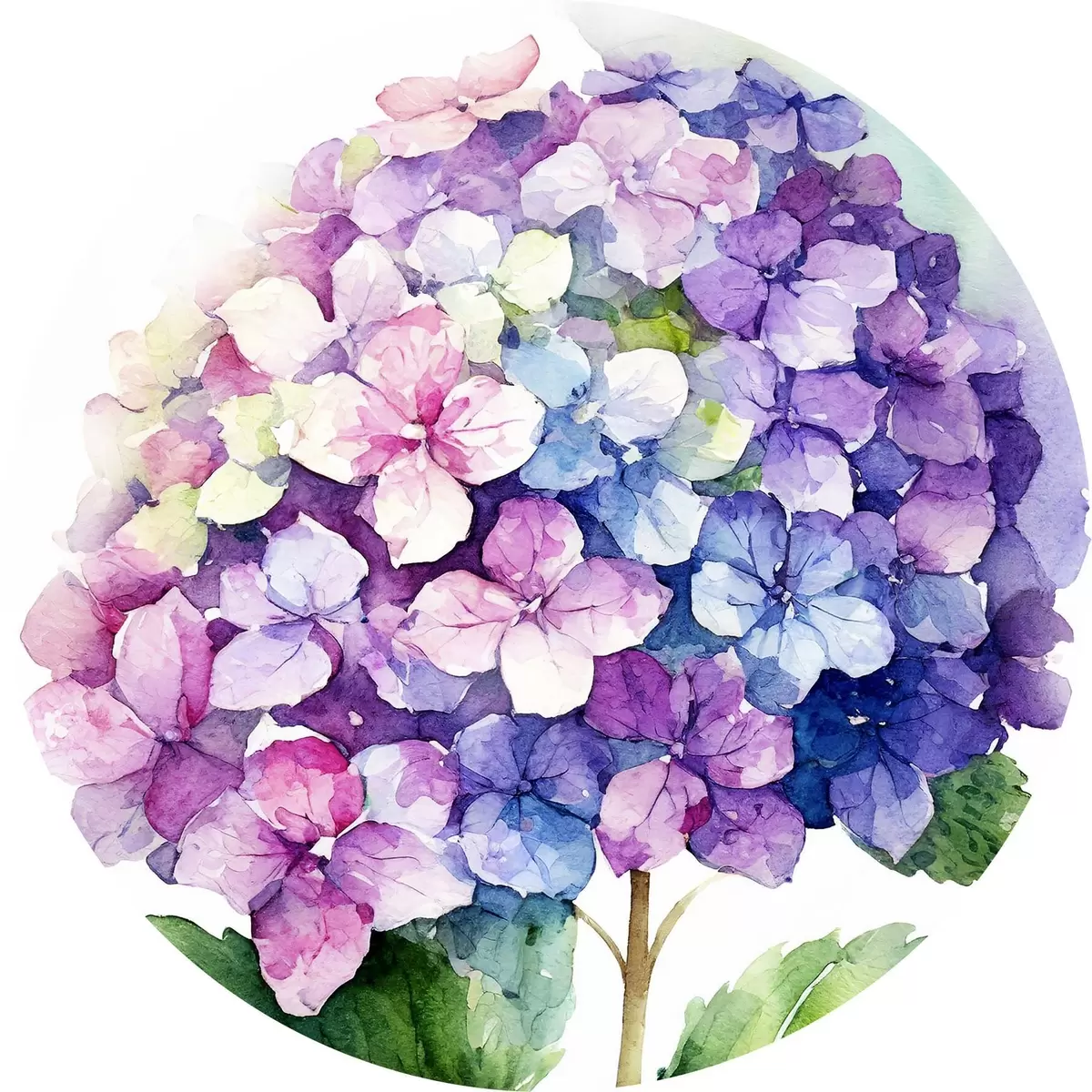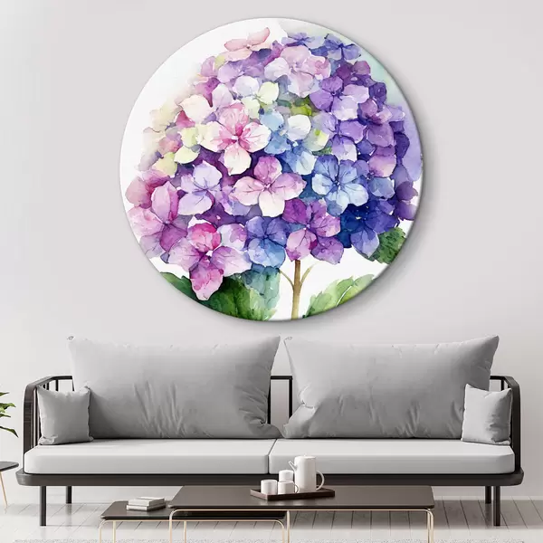 Cuadros redondos Hortensia en acuarela, ilustración floral, minimalismo r37344