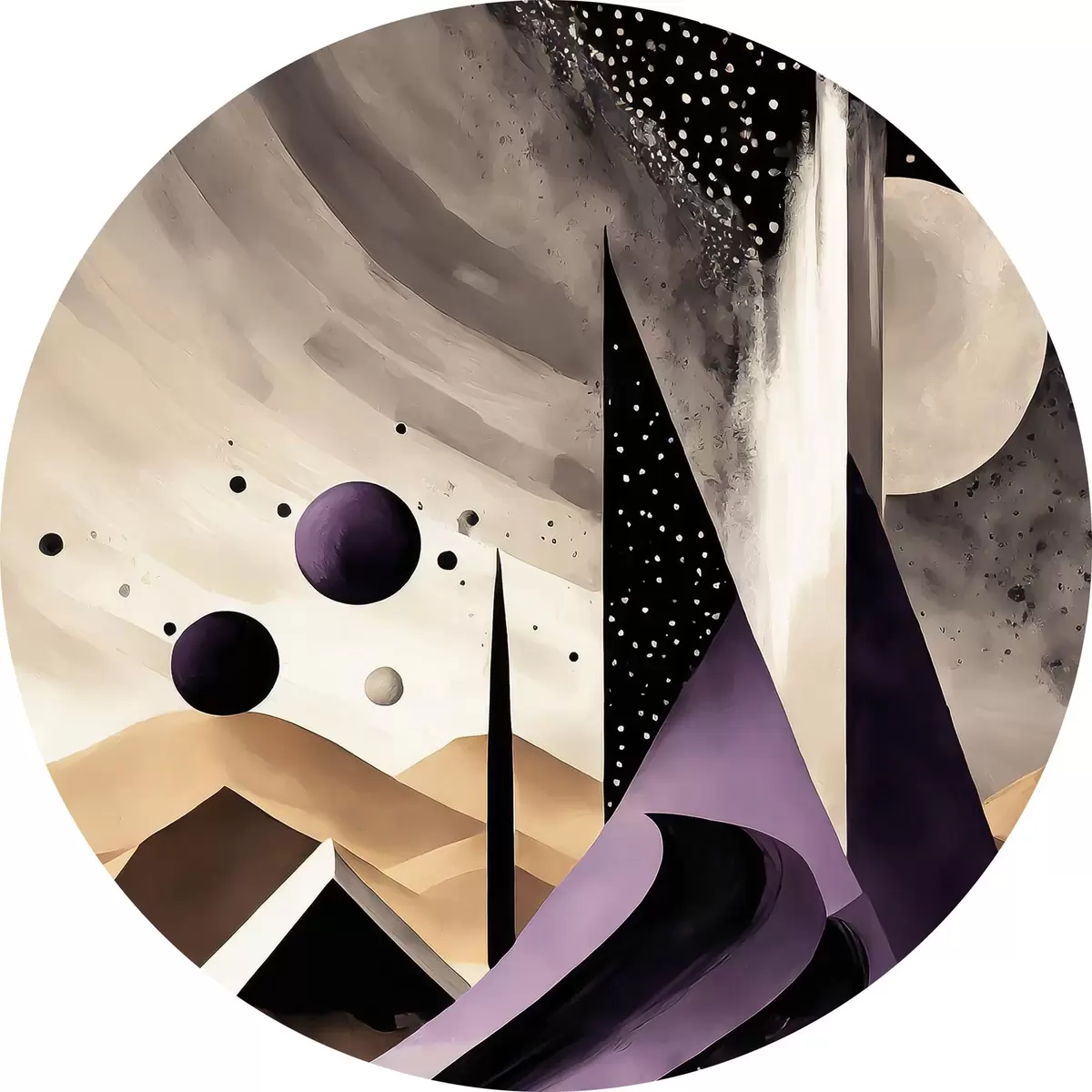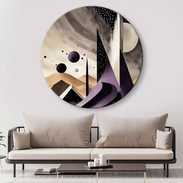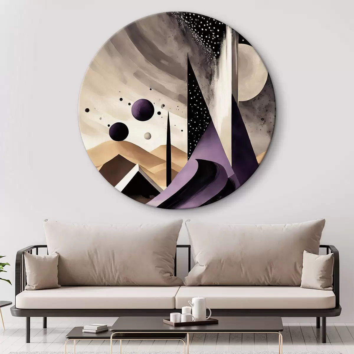 Cuadros redondos Paisaje desértico en blanco y morado r37359