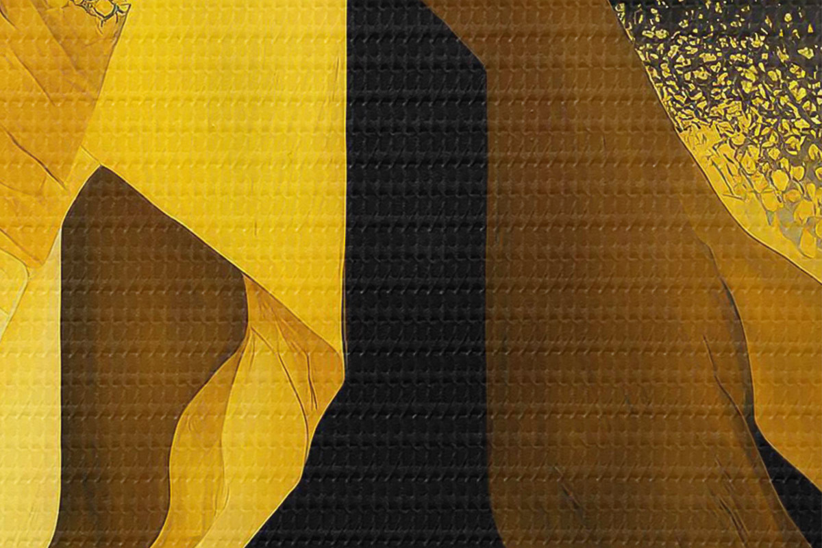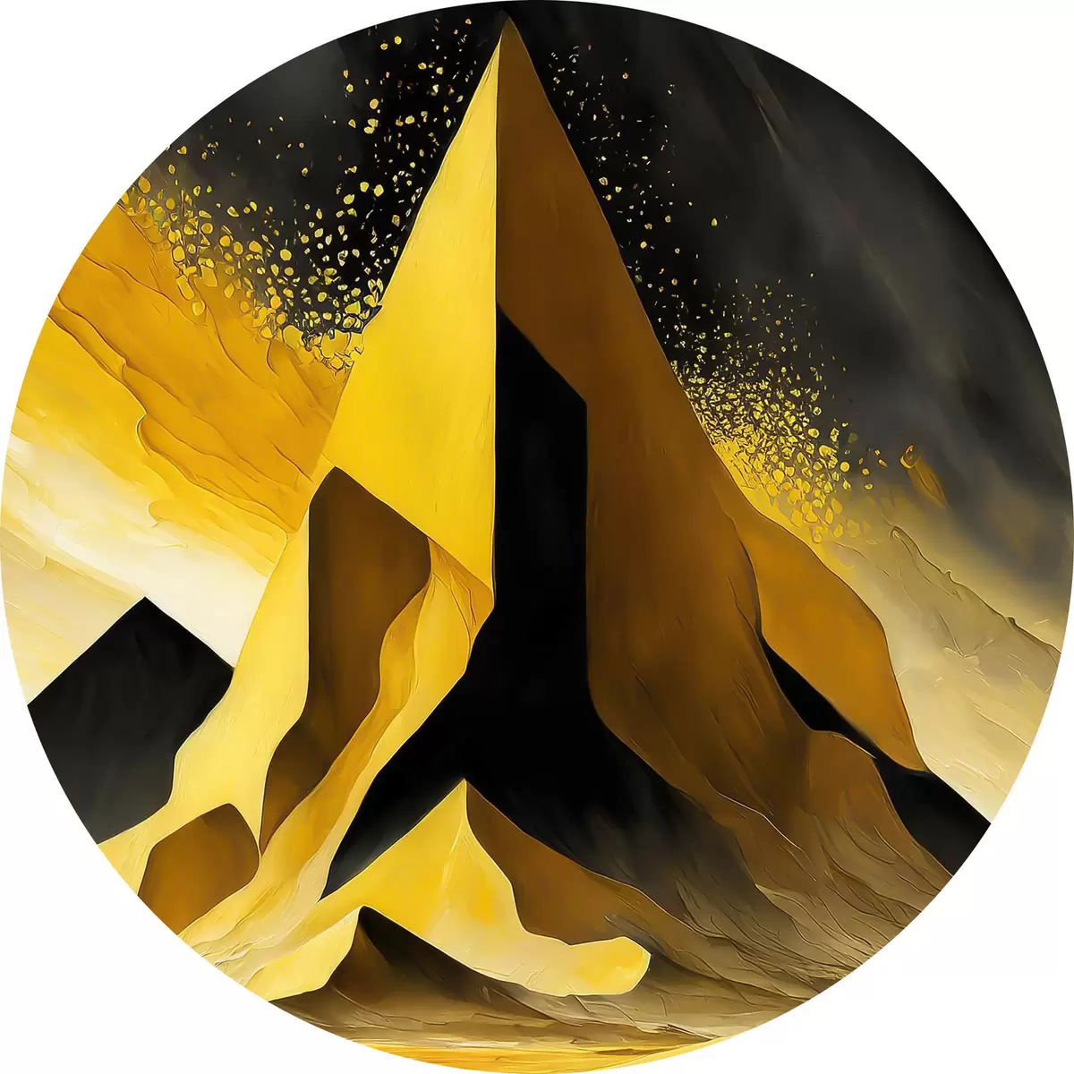 Foto Arte geométrico dorado, abstracción espacial, futurista, desierto con rocas Nr r37365
