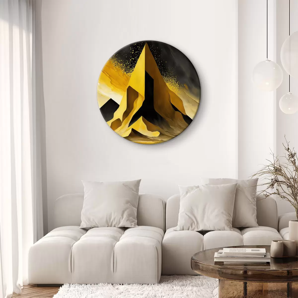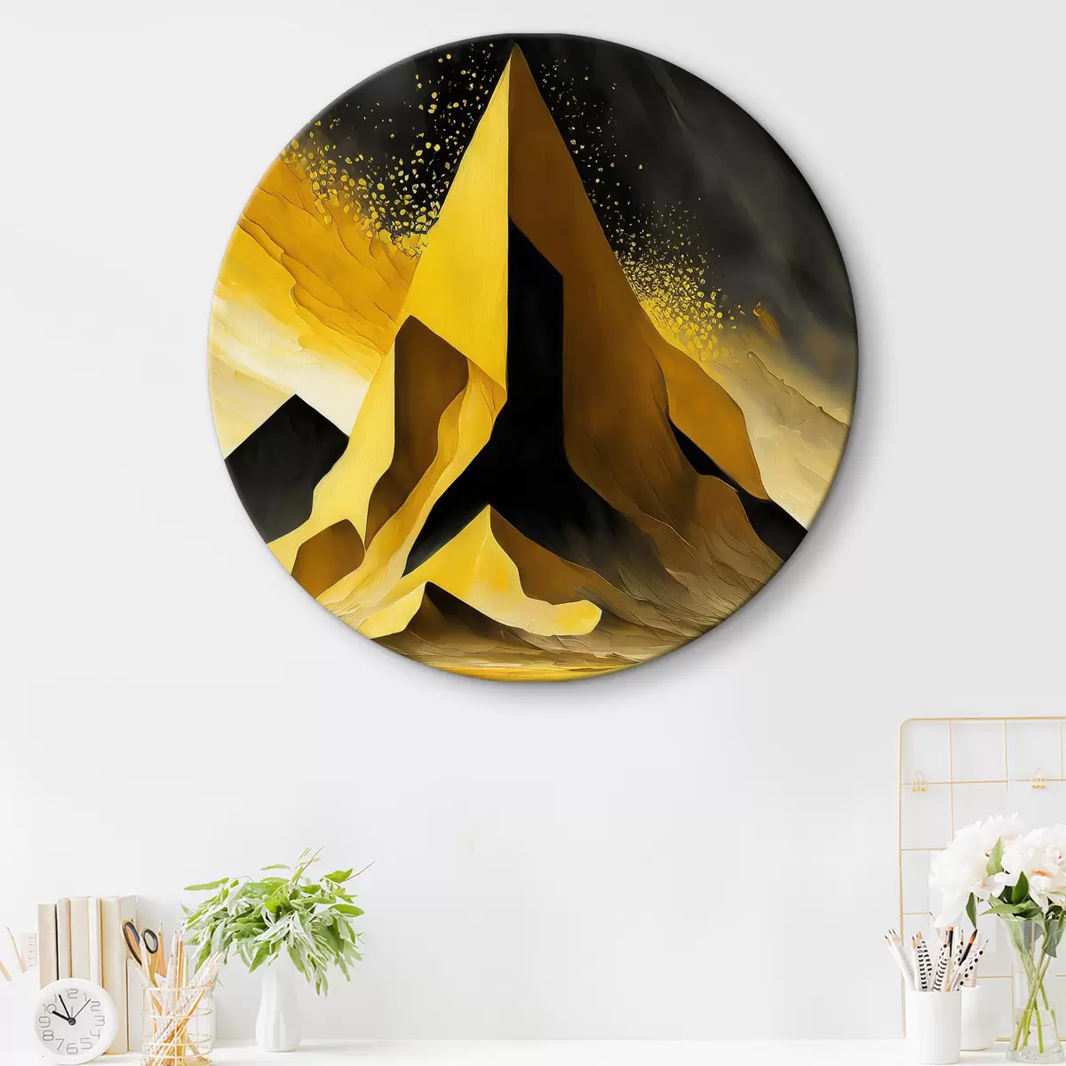 Cuadros redondos Arte geométrico dorado, abstracción espacial, futurista, desierto con rocas r37365