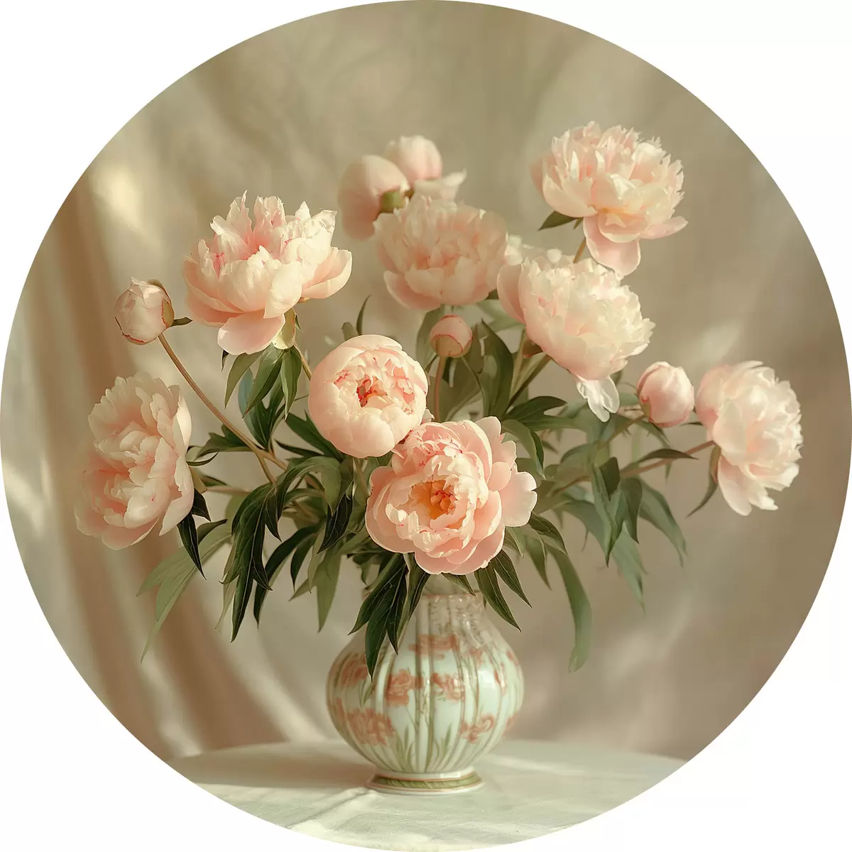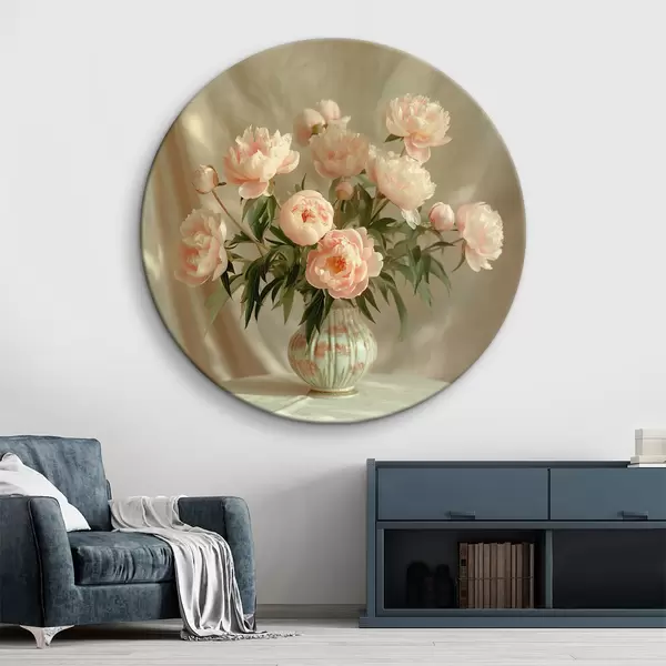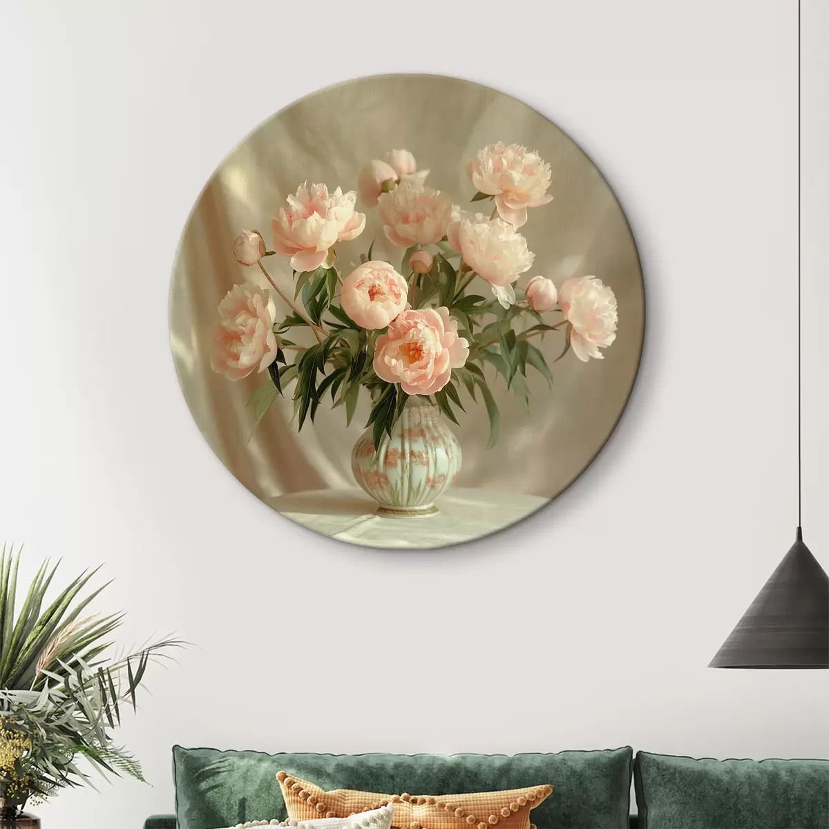 Cuadros redondos Delicadas peonías sobre la mesa r37374