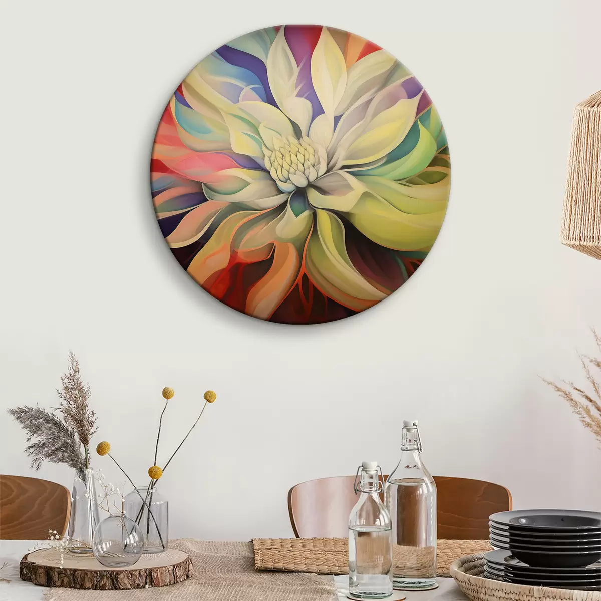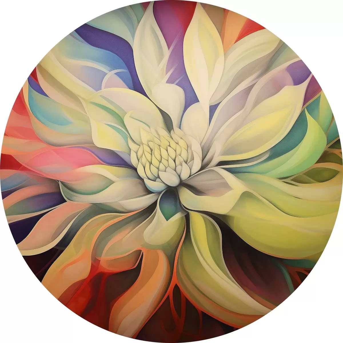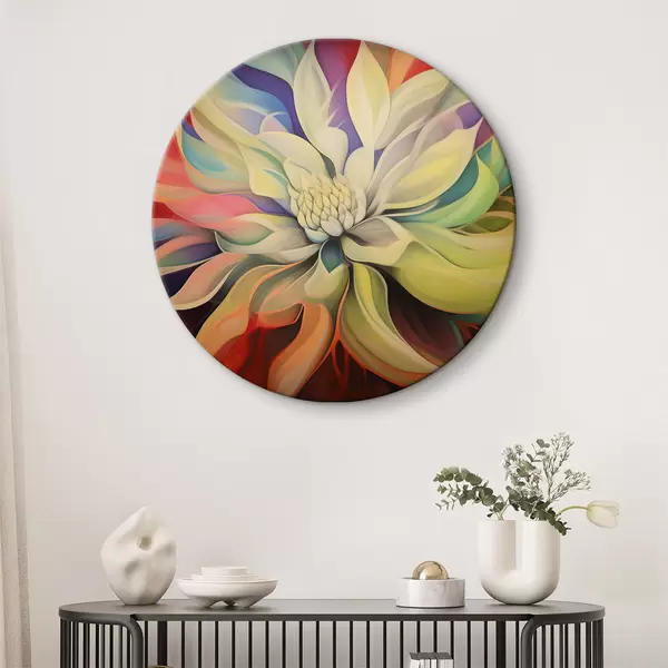 Cuadros redondos Flor colorida con pétalos blancos r37386