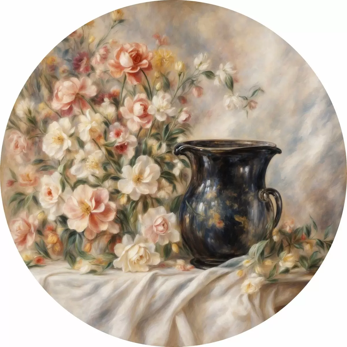 Cuadros redondos Ramo y jarra de verano al estilo de Auguste Renoir r37437