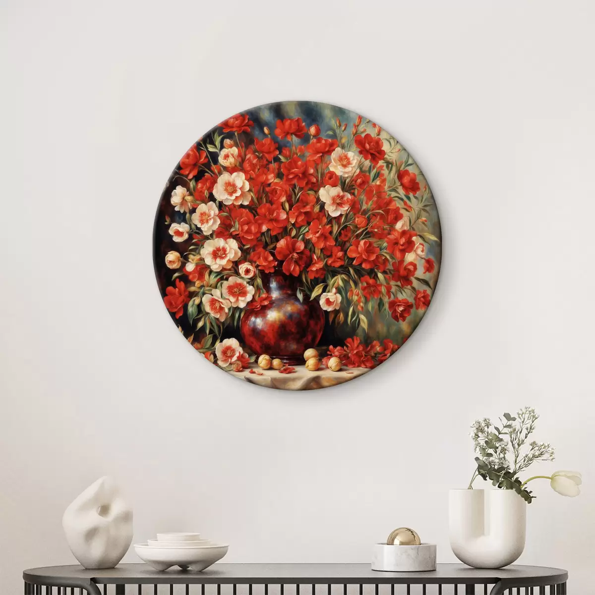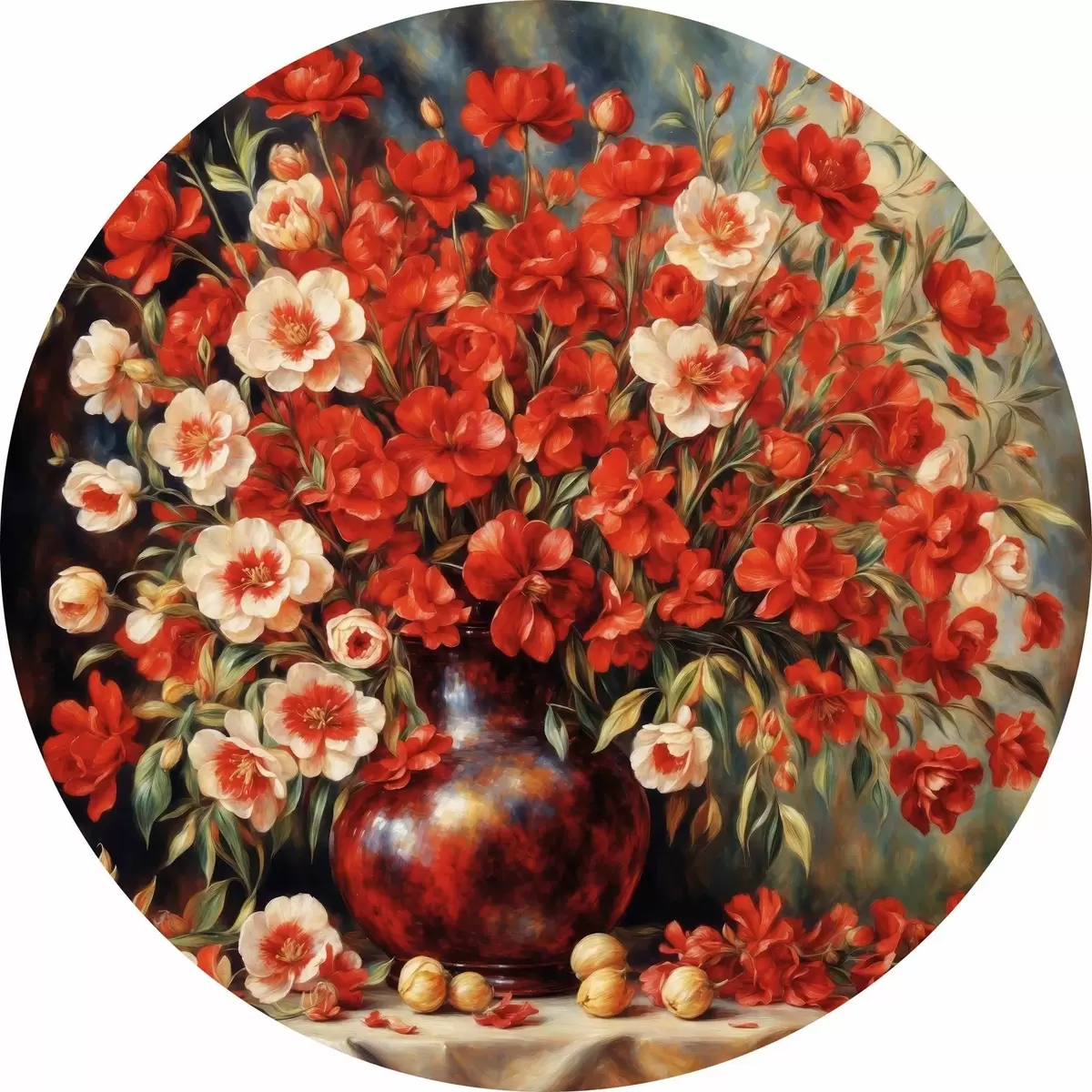 Cuadros redondos Ramo rojo al estilo de Auguste Renoir r37439