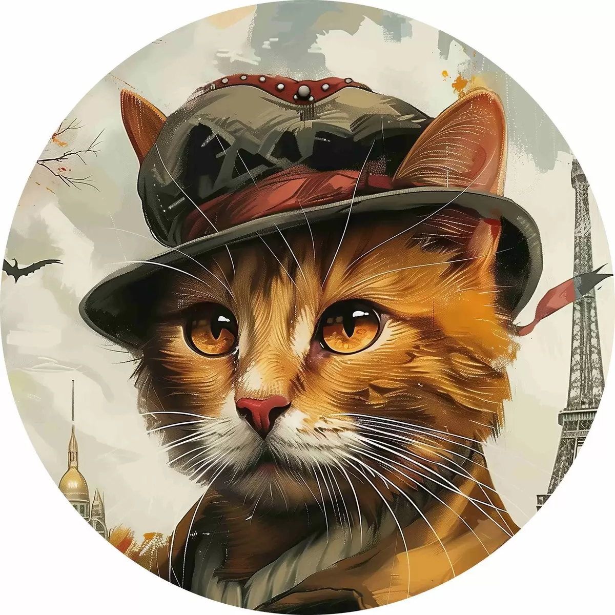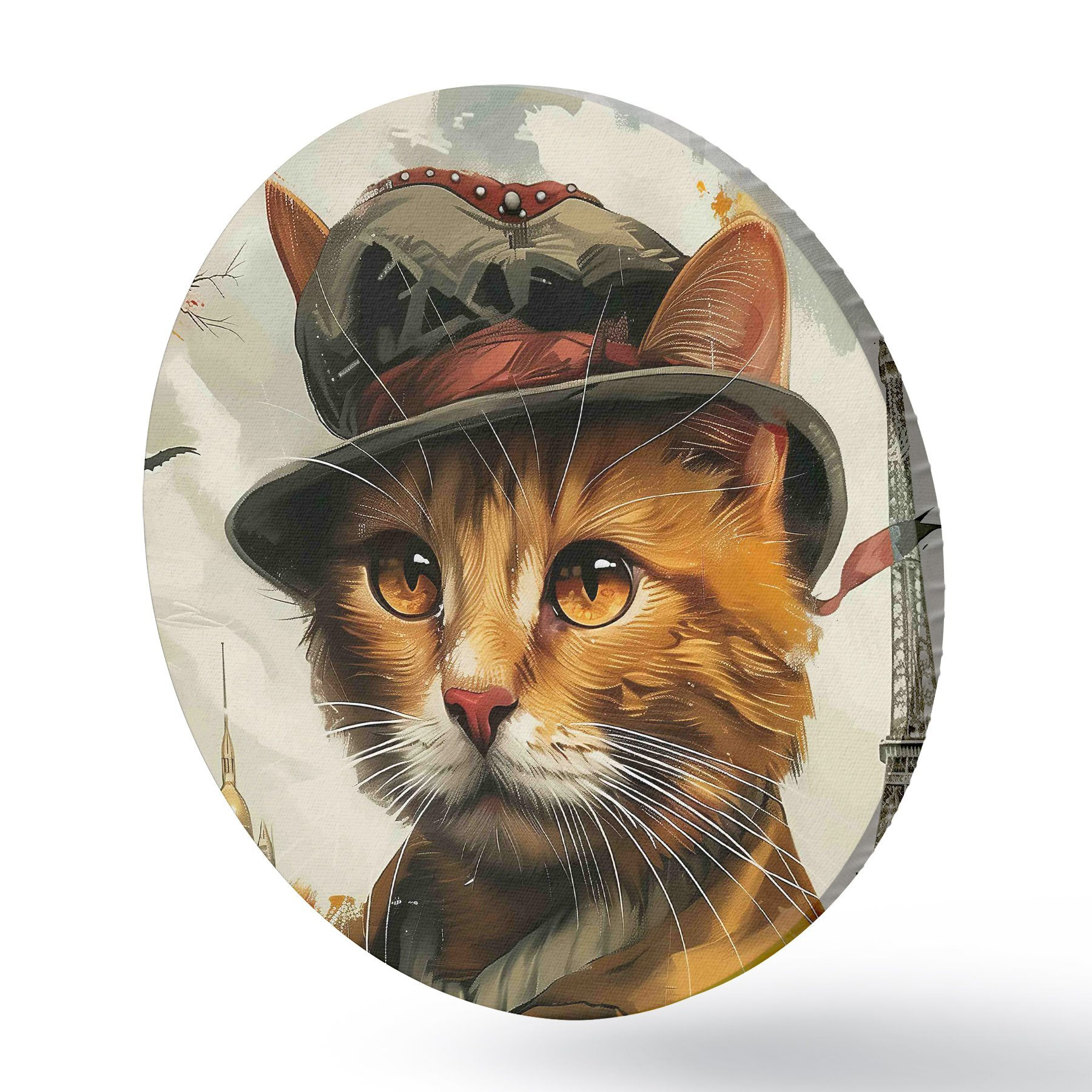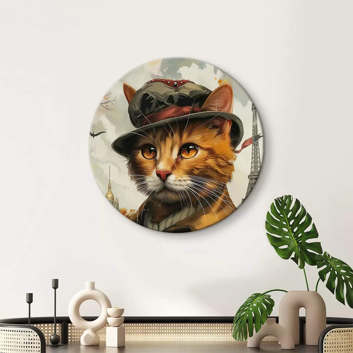 Cuadros redondos Gato con sombrero y abrigo r37457