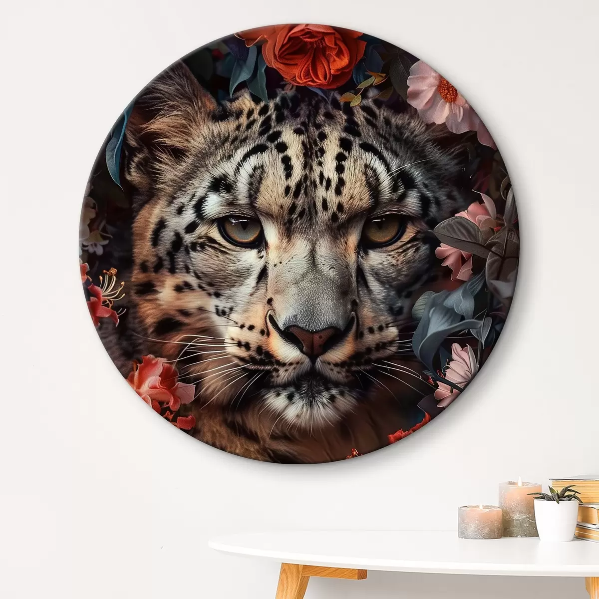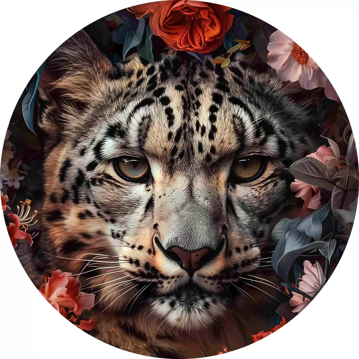 Cuadros redondos Leopardo en el jardín de flores r37464