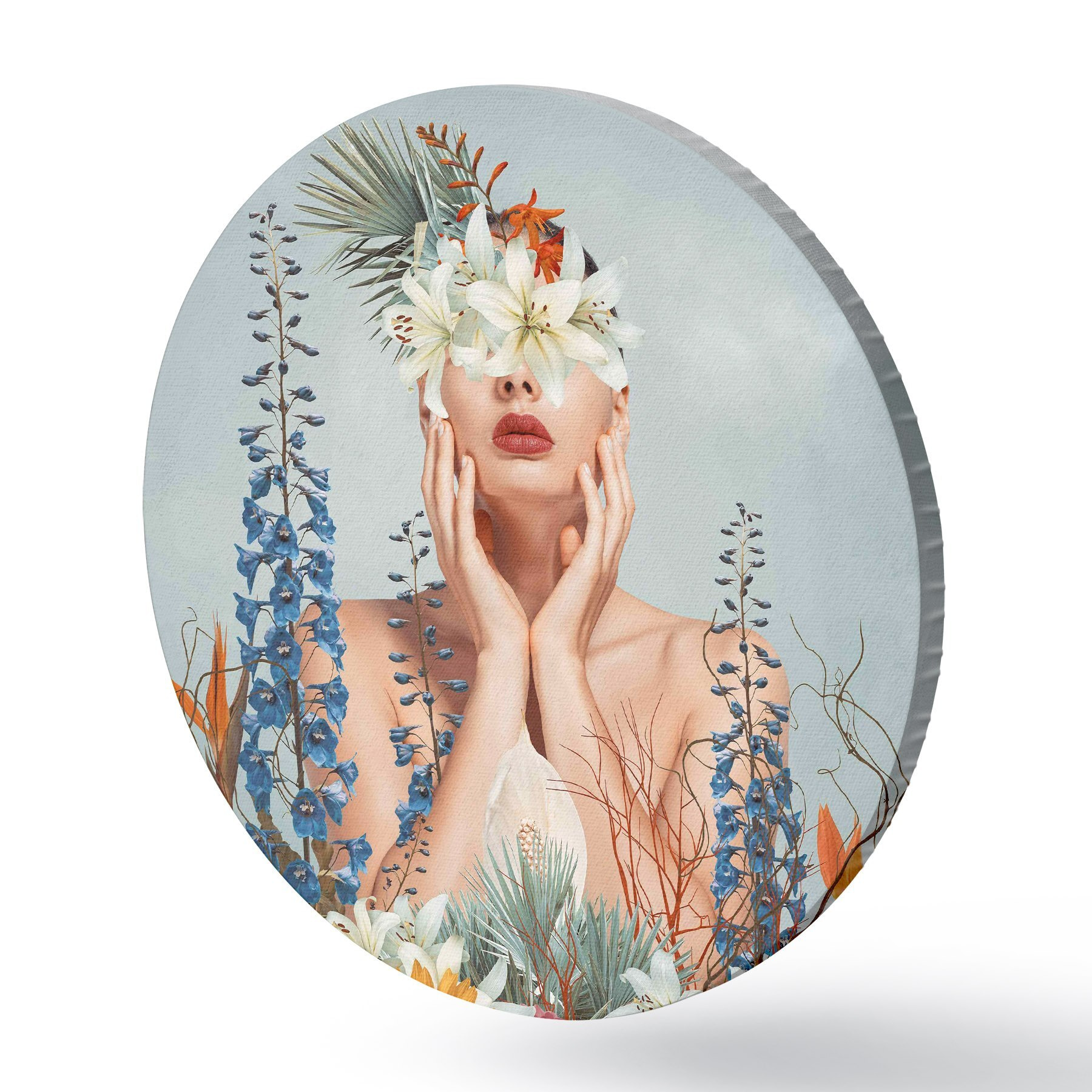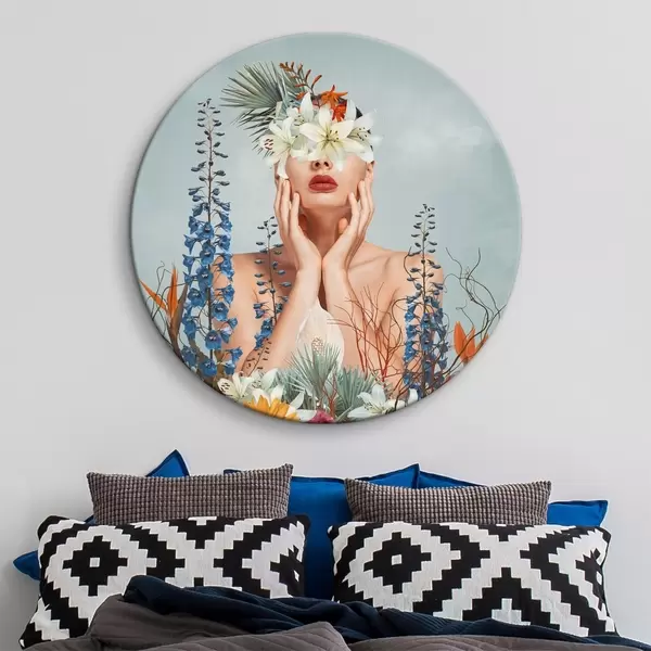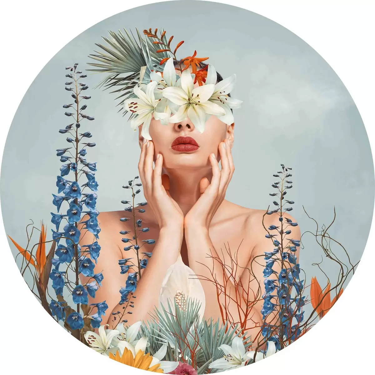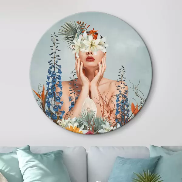 Cuadros redondos Mujer con flores alrededor de la cara r37477