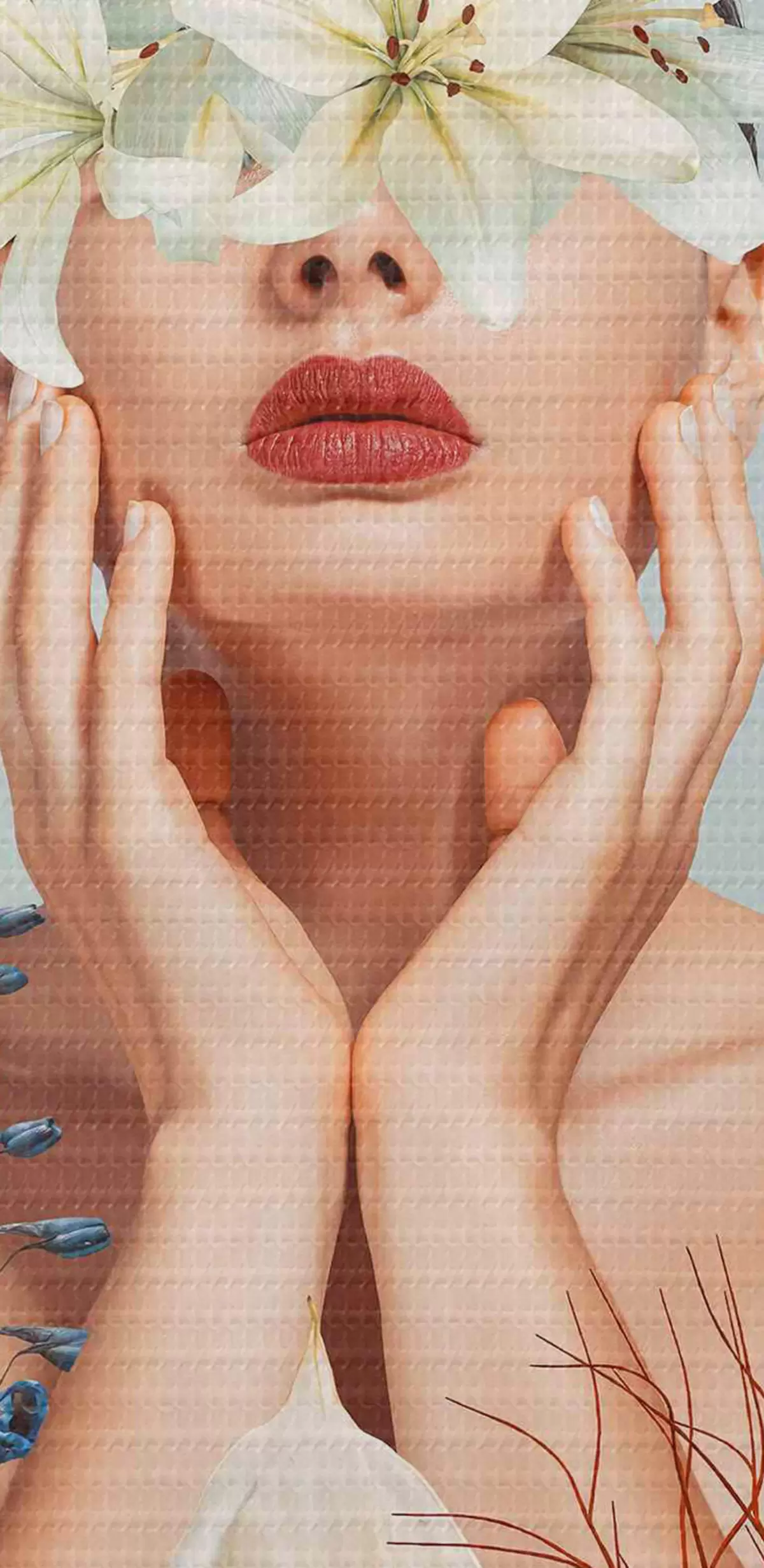 Foto Mujer con flores alrededor de la cara Nr r37477