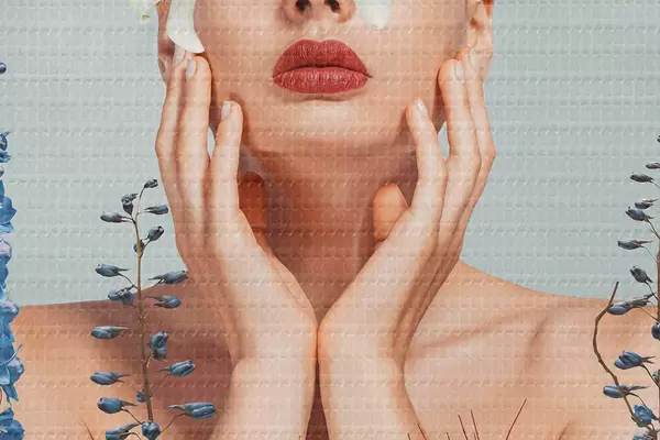 Foto Mujer con flores alrededor de la cara Nr r37477