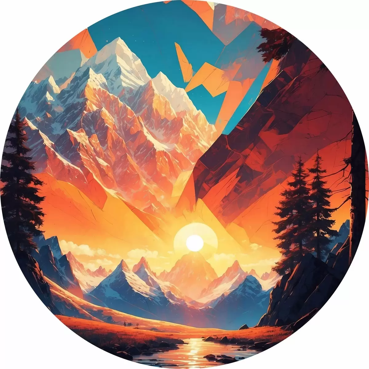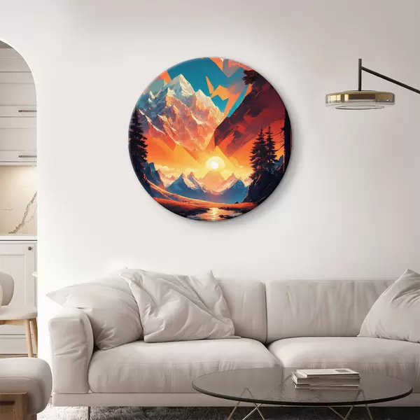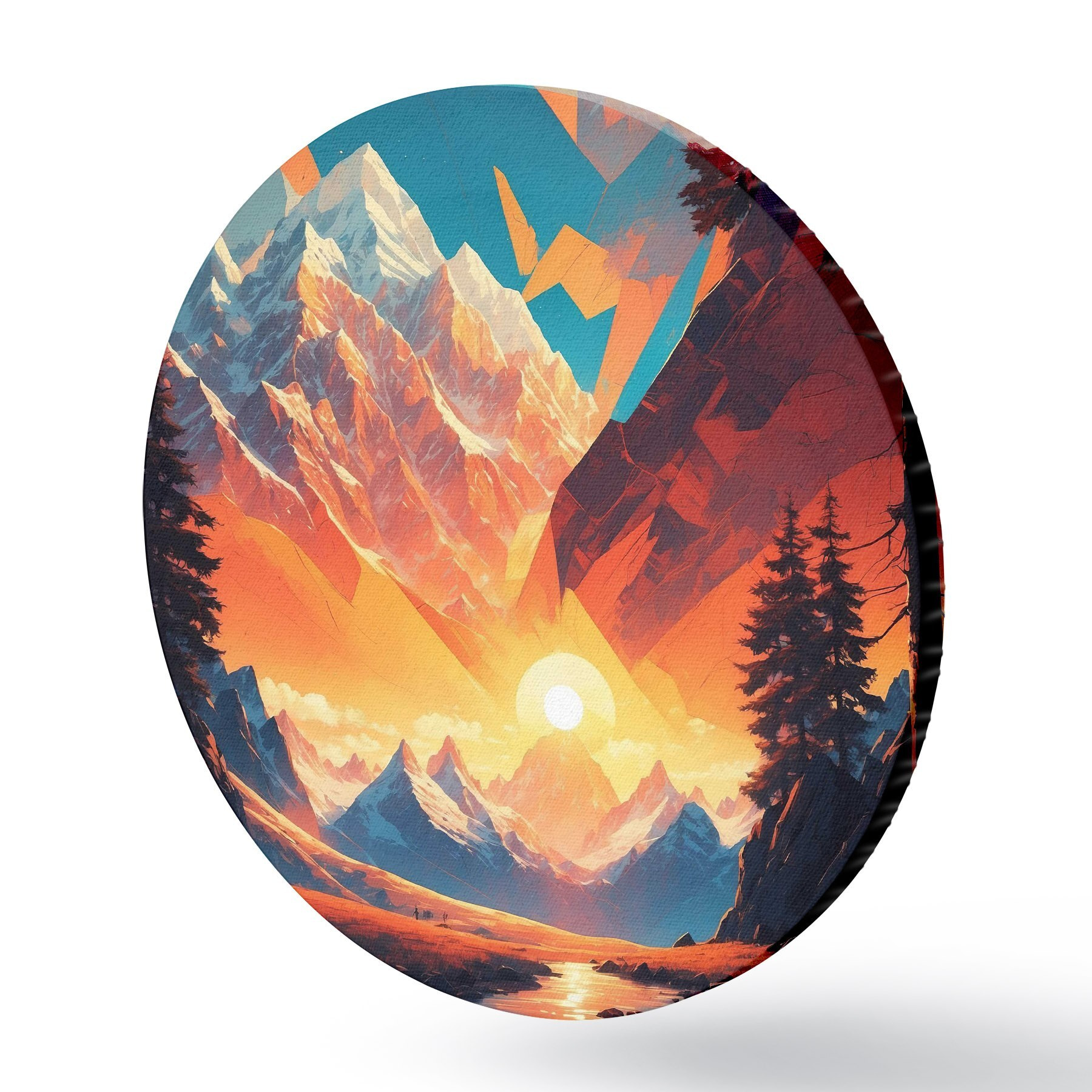 Cuadros redondos Paisaje de montaña con árboles y montañas r37532