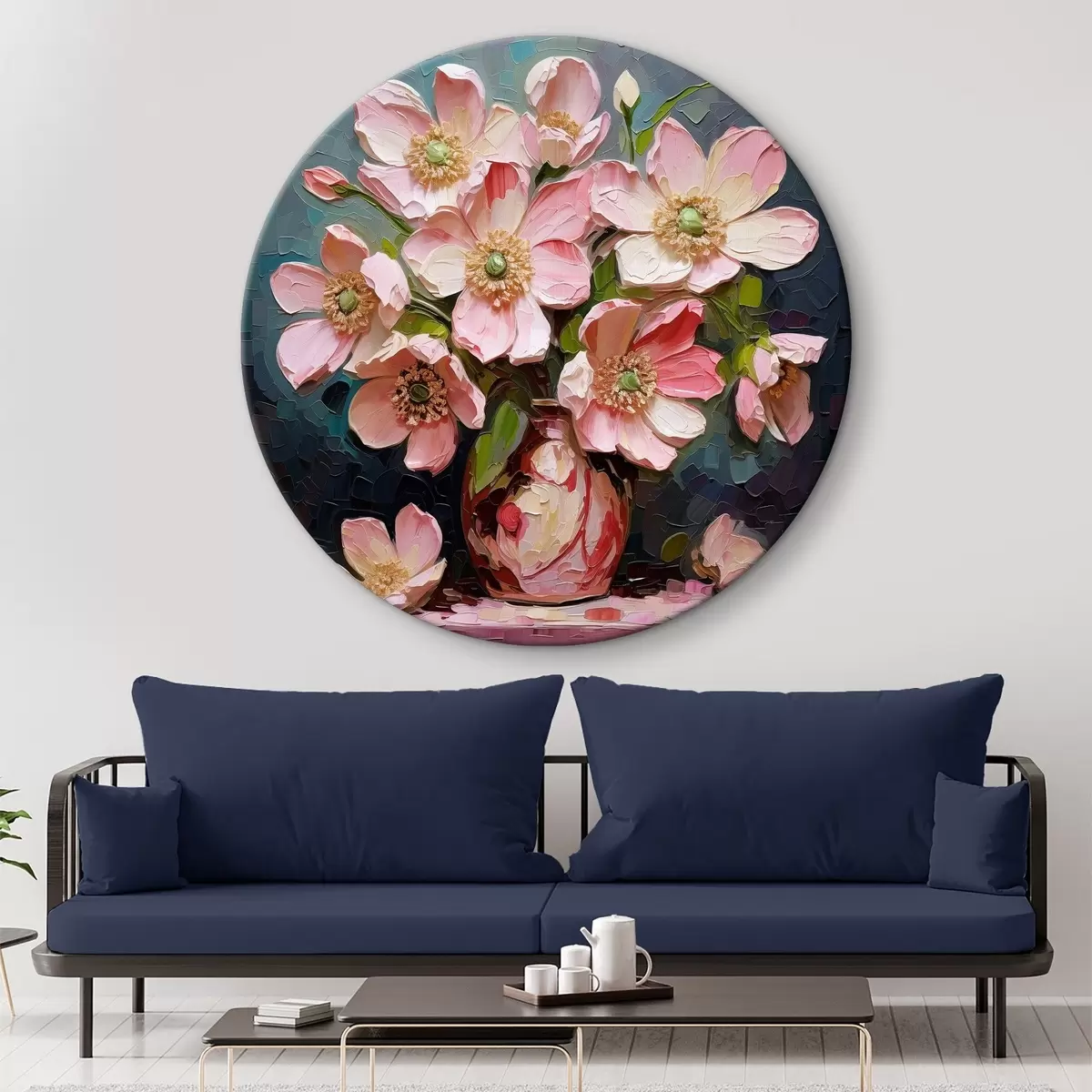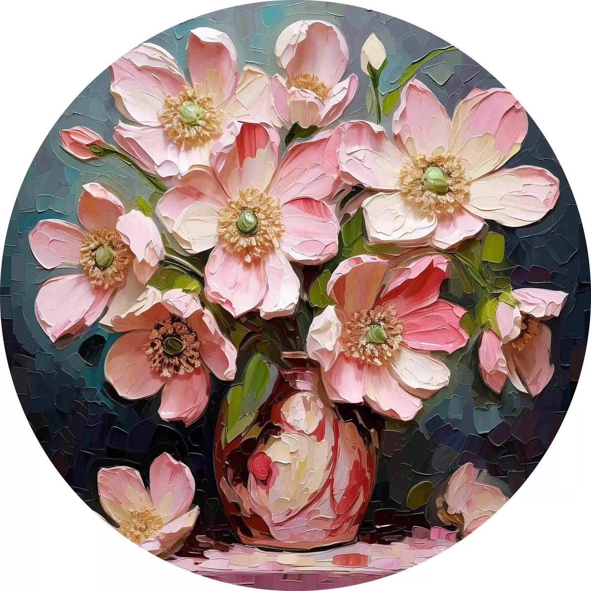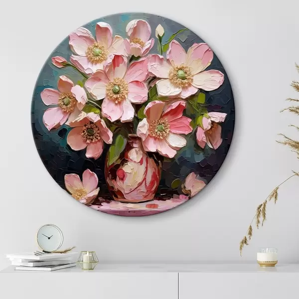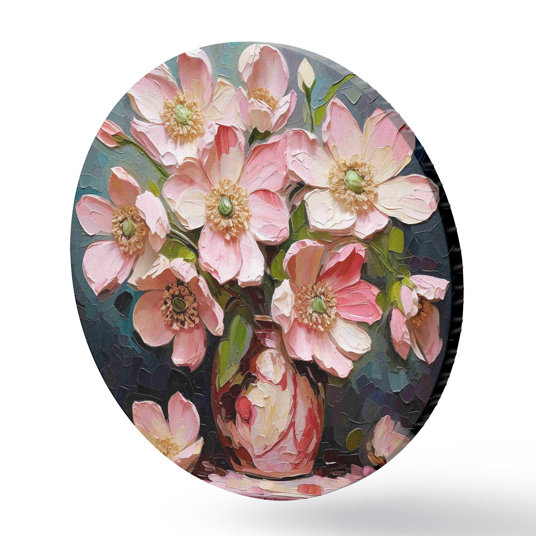 Cuadros redondos Un cuadro de flores rosas en un jarrón r37558