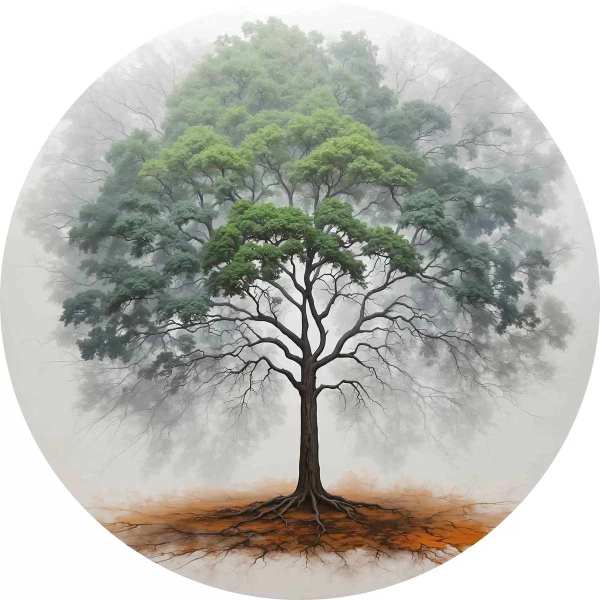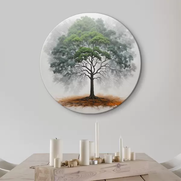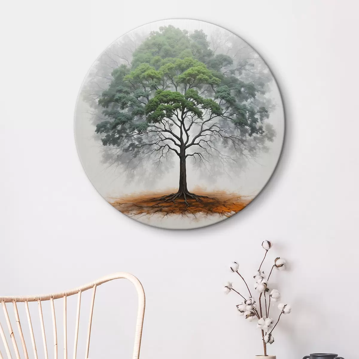 Cuadros redondos Un árbol majestuoso en la niebla r37577