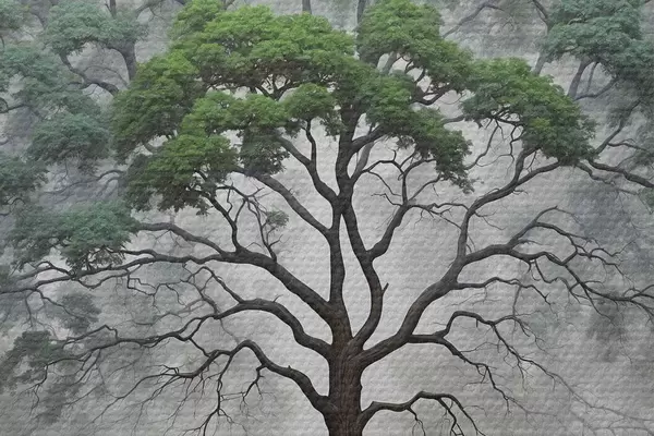Foto Un árbol majestuoso en la niebla Nr r37577