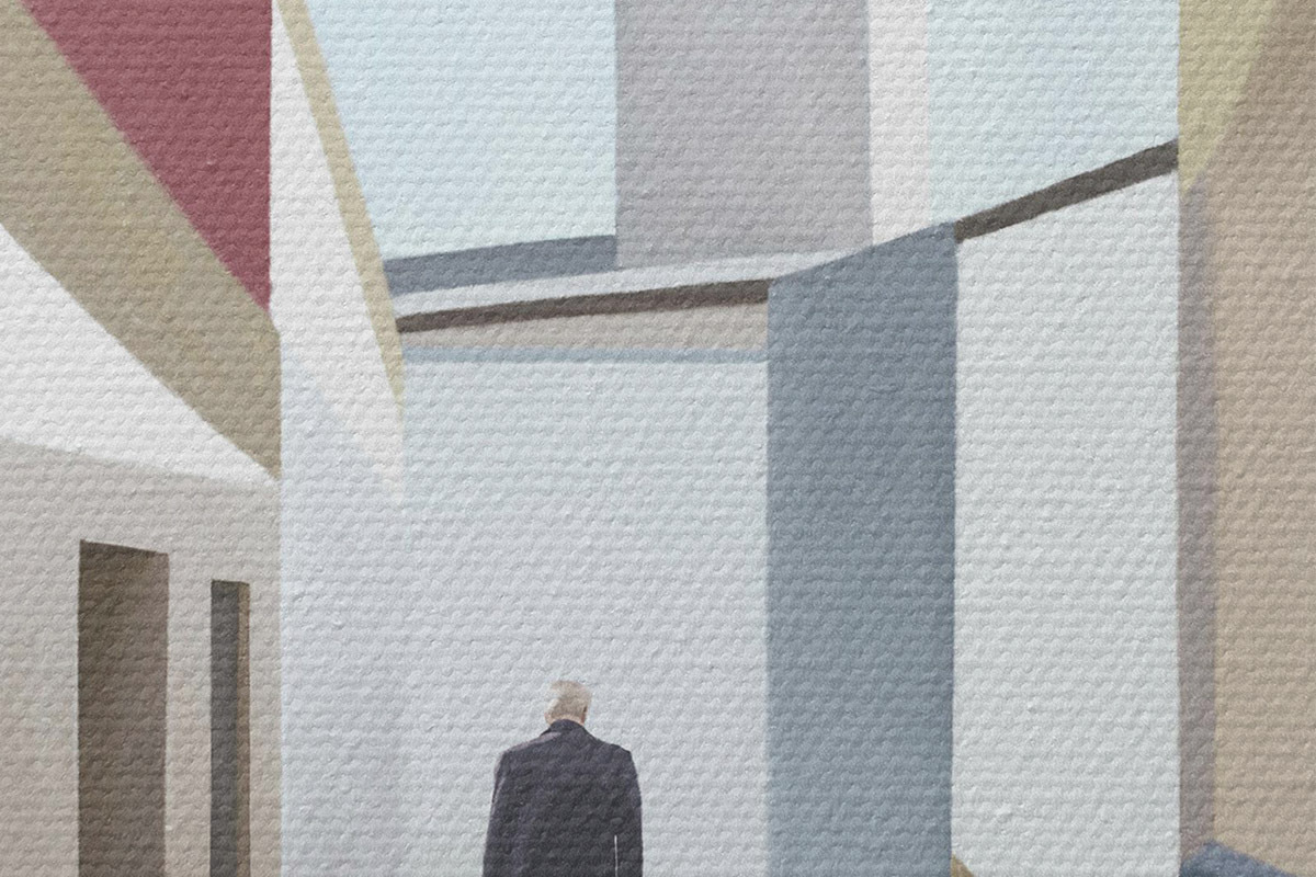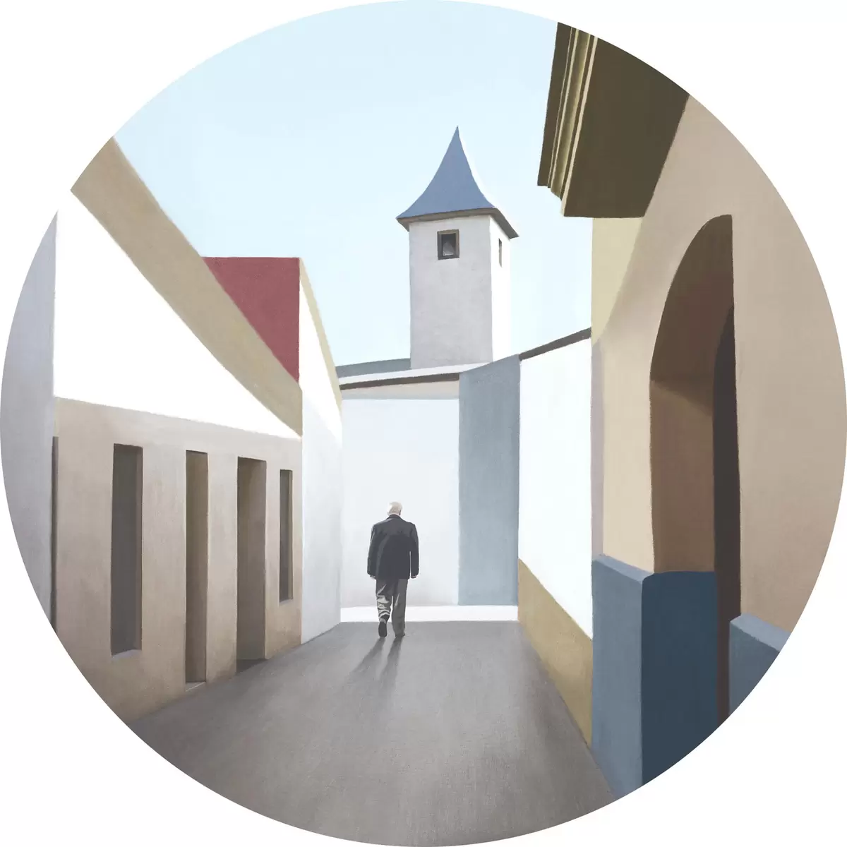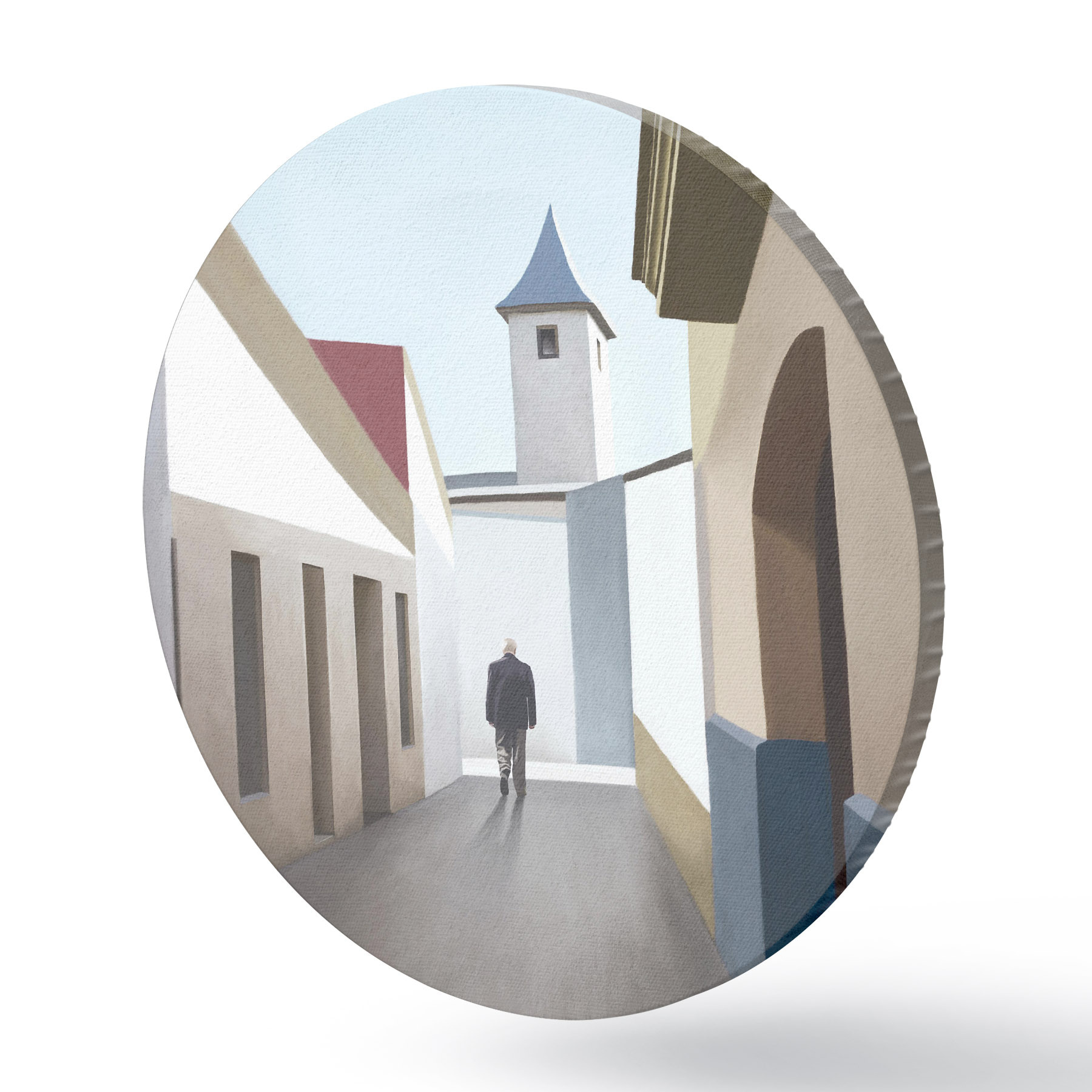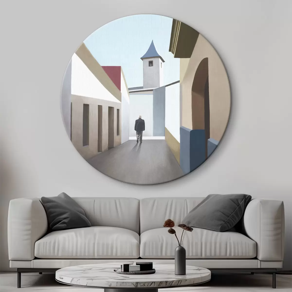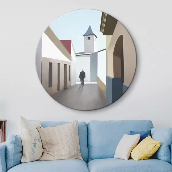 Cuadros redondos Un hombre caminando por una calle estrecha r37784