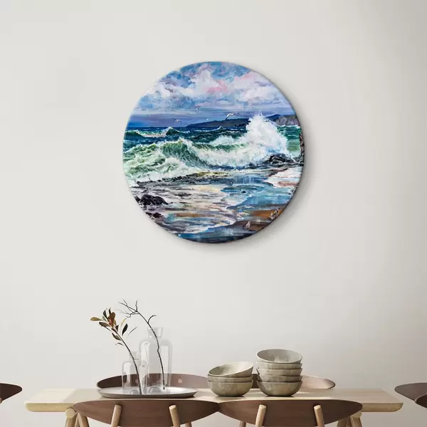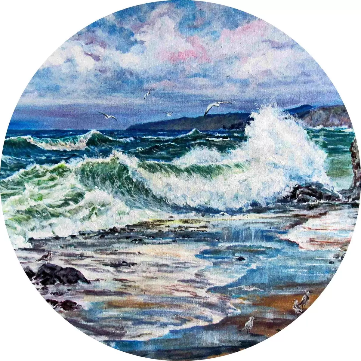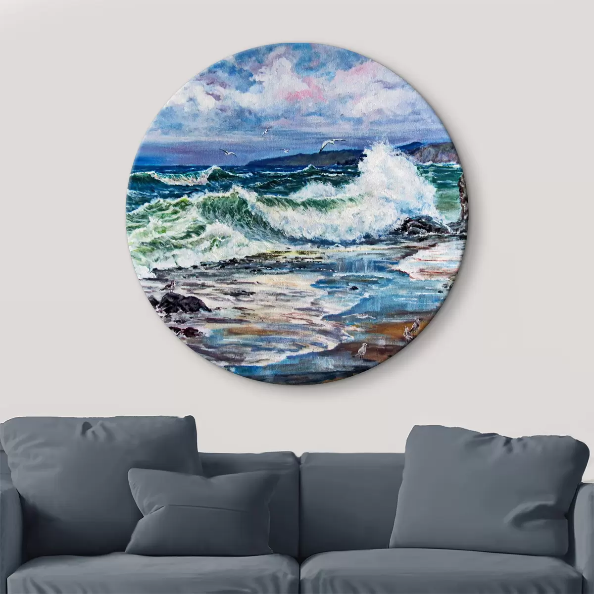 Cuadros redondos Una imagen de olas rompiendo en una playa r37785