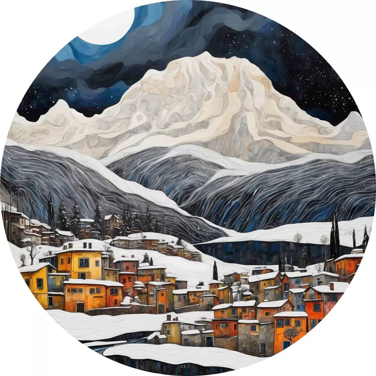Cuadros redondos Imagen de una ciudad bajo la nieve r37795