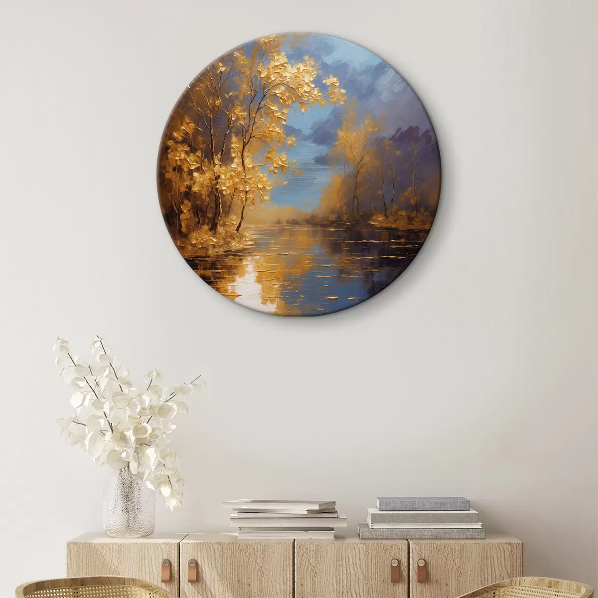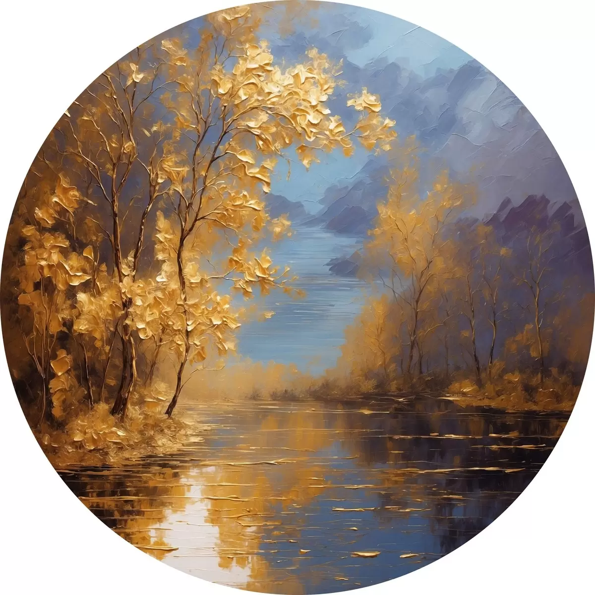 Cuadros redondos Lago en el bosque otoñal r37804