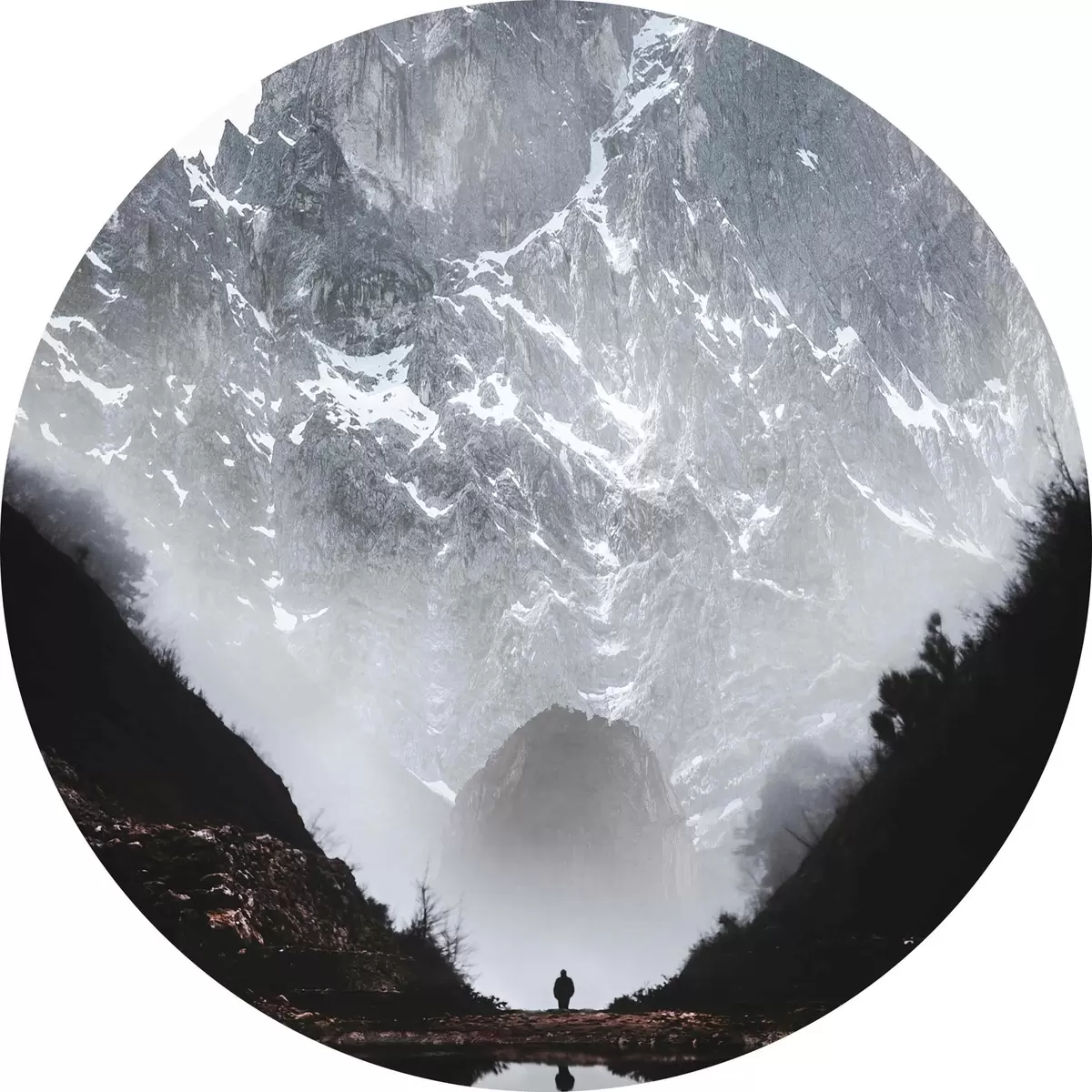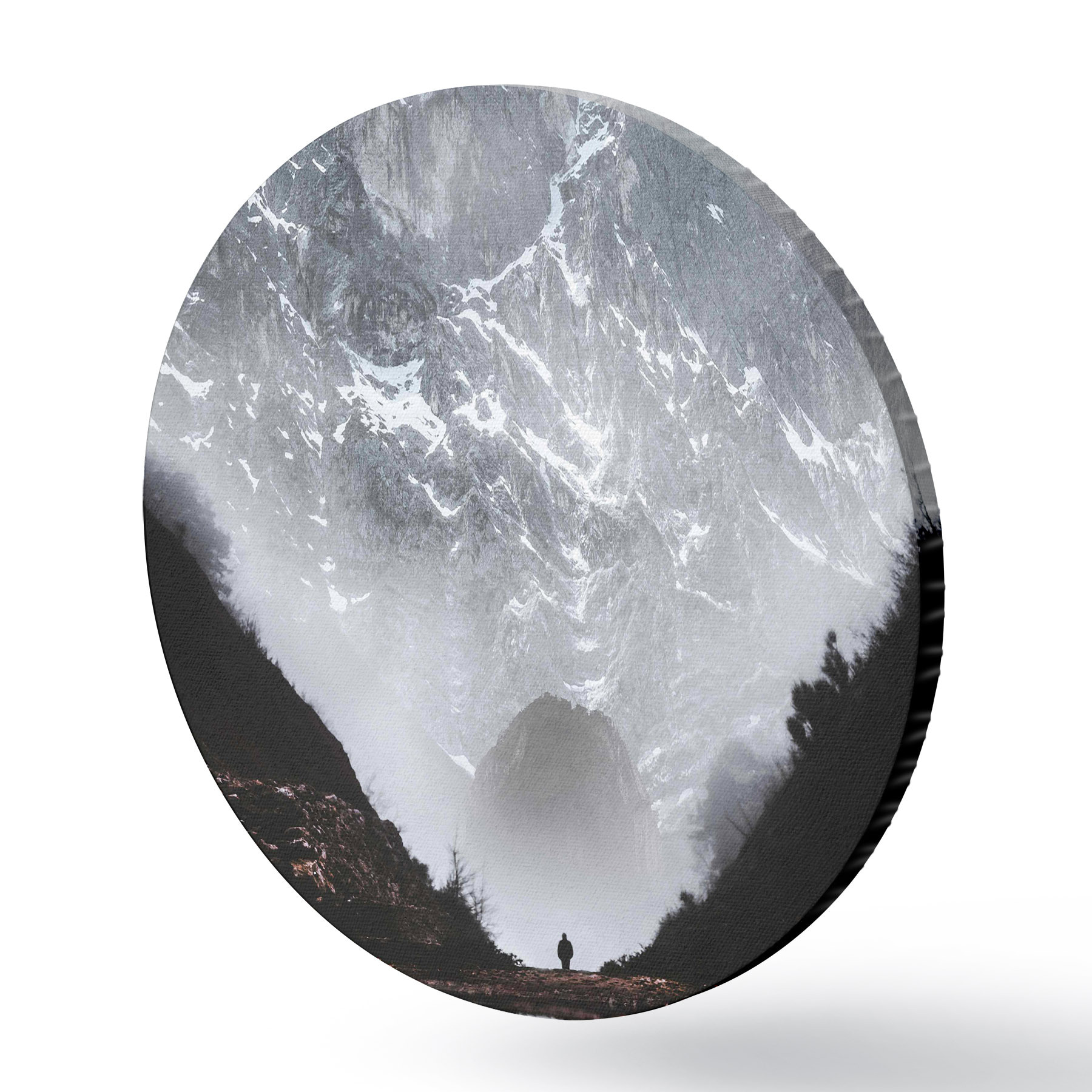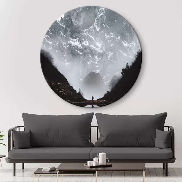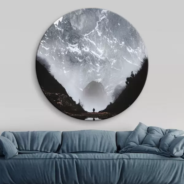 Cuadros redondos Las montañas neblinosas se reflejan en el agua r37828