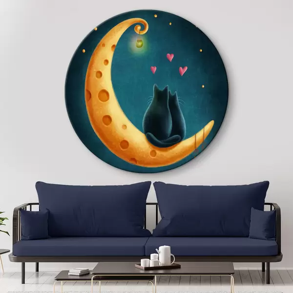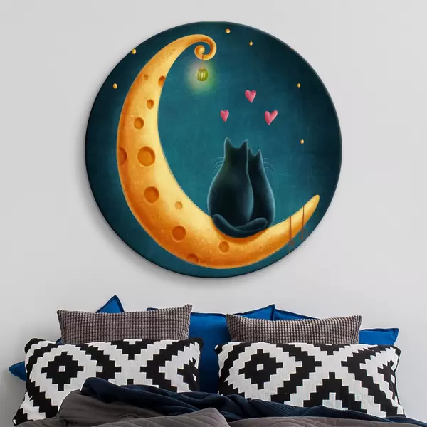 Cuadros redondos Gatos enamorados bajo la luz de la luna r37836
